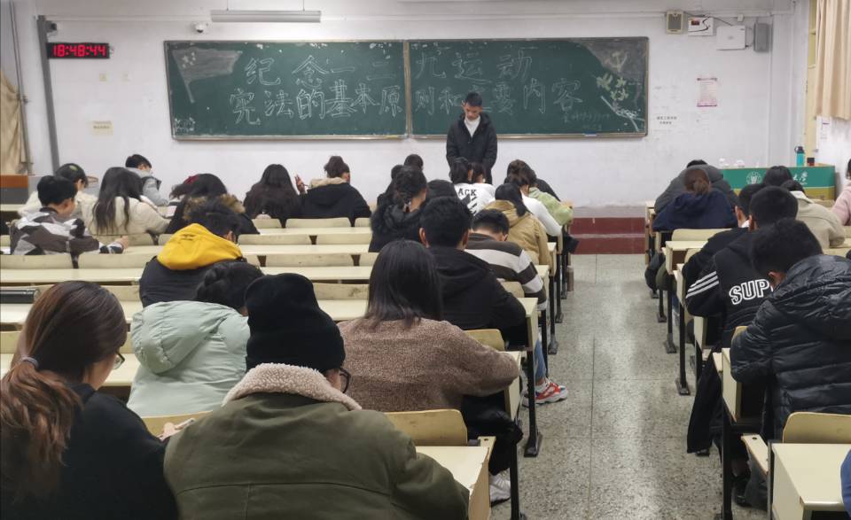 12月8日,mk体育在教学区开展“纪念一二九运动”和“宪法的基本原则和主要内容”主题政治学习。2018级、2019级全体员工参与学习。