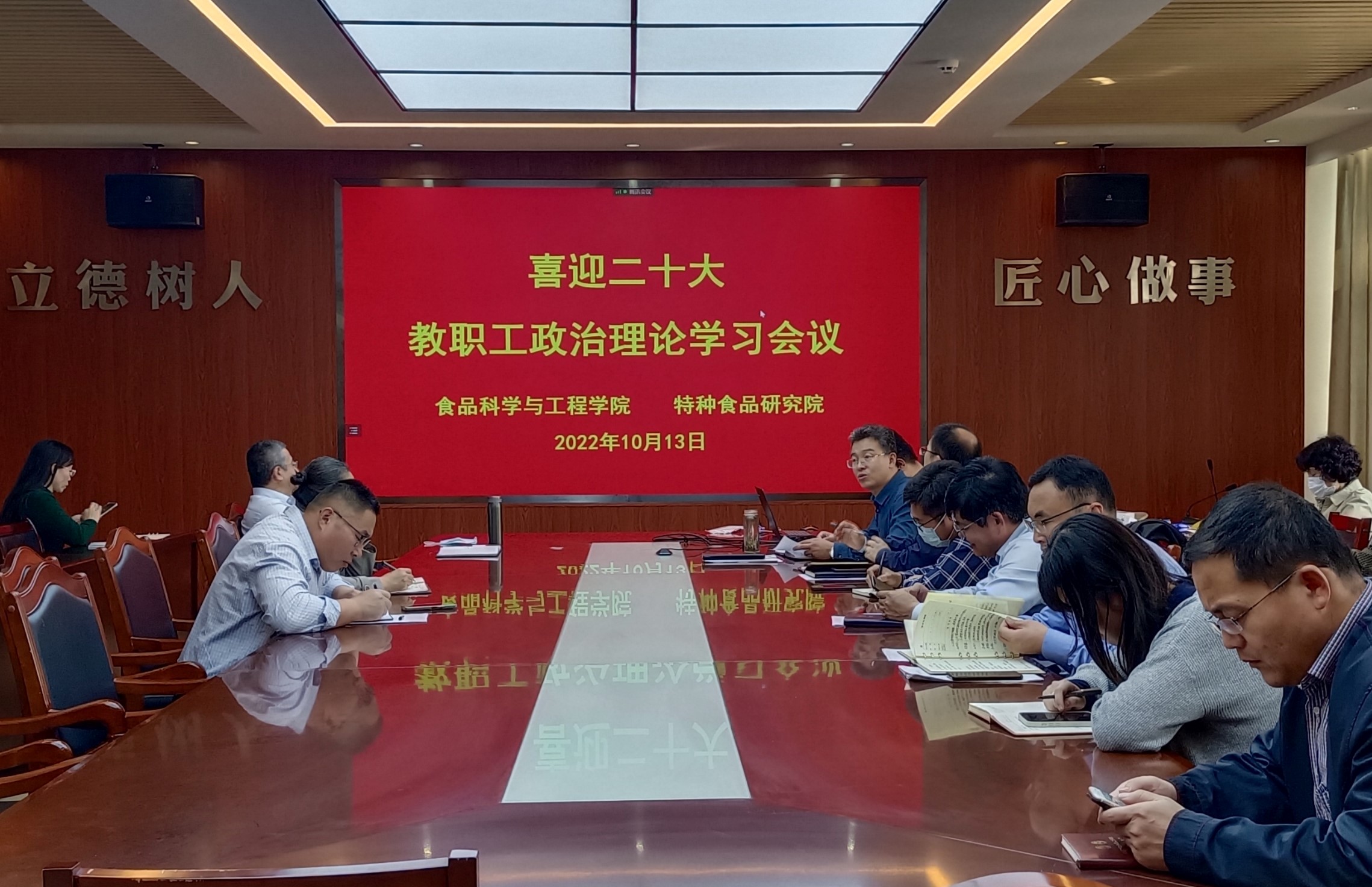 在党的二十大即将召开之际,10月13日,mk体育、特种食品研究院在食品楼会议室召开“喜迎二十大”教职工政治理论学习会议,全体教职工参加会议,会议由公司党委书记车广杰主持。