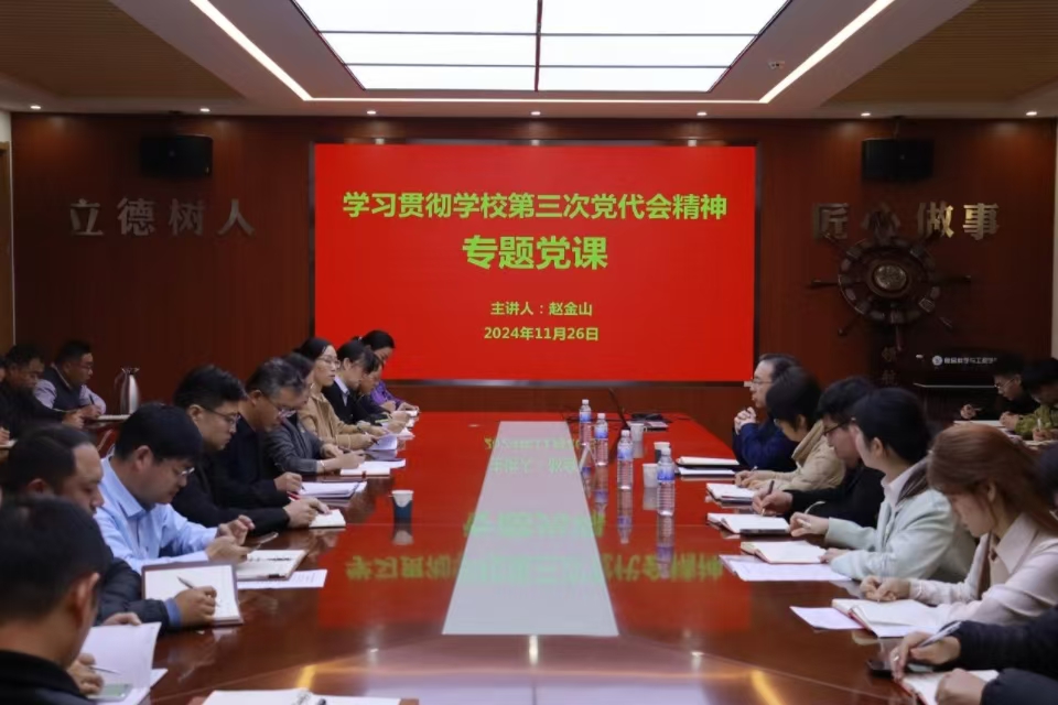 赵金山指出,三次党代会工作报告突出政治性、引领性、时代性和先进性,坚持需求导向、目标导向、问题导向三个导向,鲜明提出实施“1186”发展战略,和推进实现“三进位、六突破”的目标任务,是引领全公司党员、干部和师生员工团结奋斗、加快建设特色鲜明的高水平应用研究型大学的纲领性文件。他强调,完成三次党代会目标任务,关键在“有效落实”,重点要做到“三个落实”。一是要结合深入学习贯彻习近平总书记重要讲话、重要回信和全国教育大会精神推进落实;二是要结合全面落实二十届三中全会精神和公司进一步深化改革工作方案推进落实;三是要结合部门公司岗位职责、教师员工使命担当推进落实。