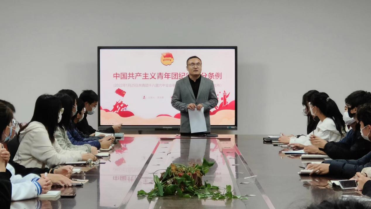 李永青领学了《中国共产主义青年团纪律处分条例(试行)》的主要内容,重点围绕团的干部队伍建设、团员队伍建设、如何切实落实从严治团与同学们展开讨论。