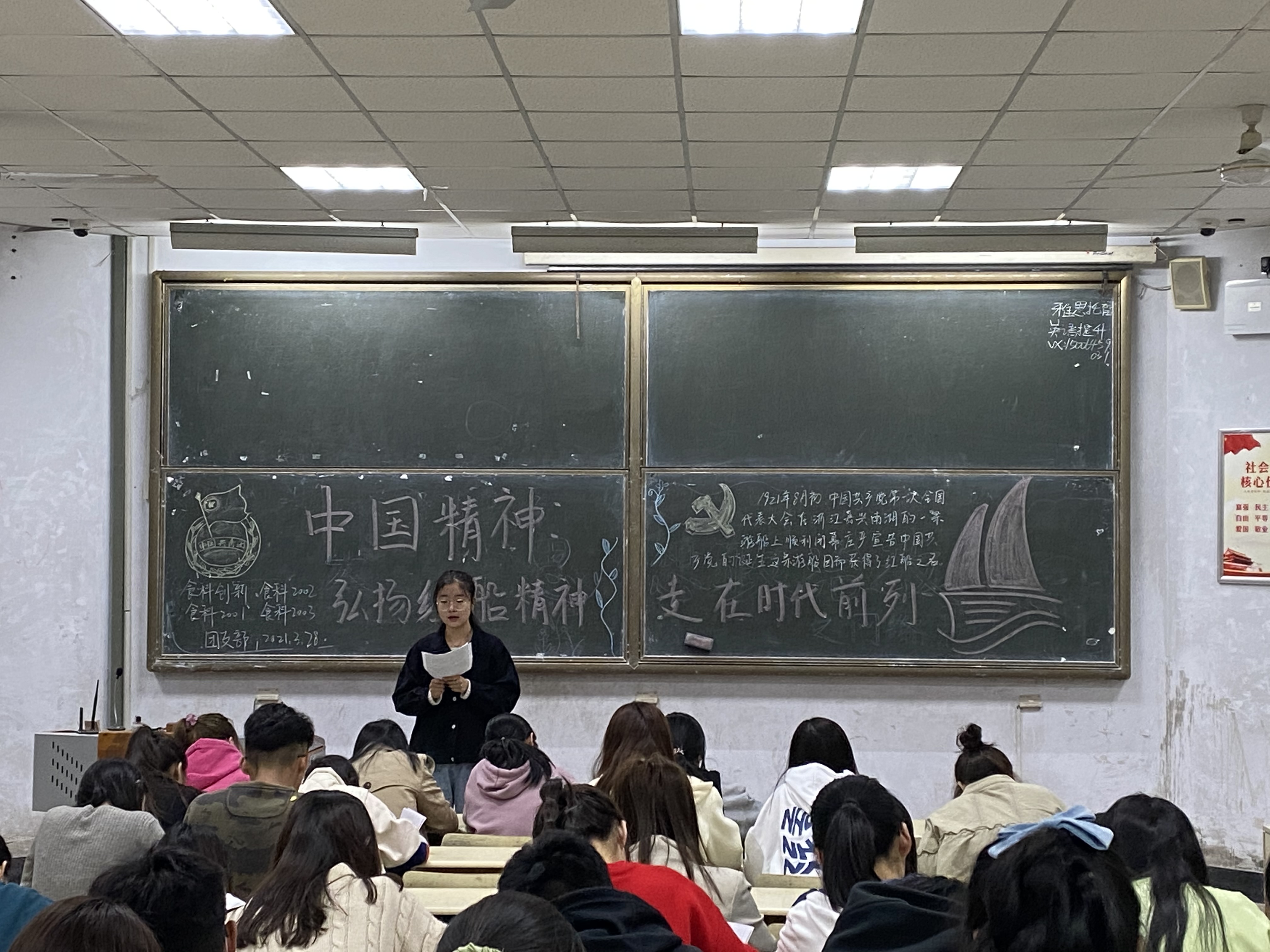为响应国家号召,传承中国精神和红船精神,3月28日,mk体育在教学区开展“中国精神:弘扬红船精神,走在时代前列”主题政治学习。2019级,2020级同学积极参加。