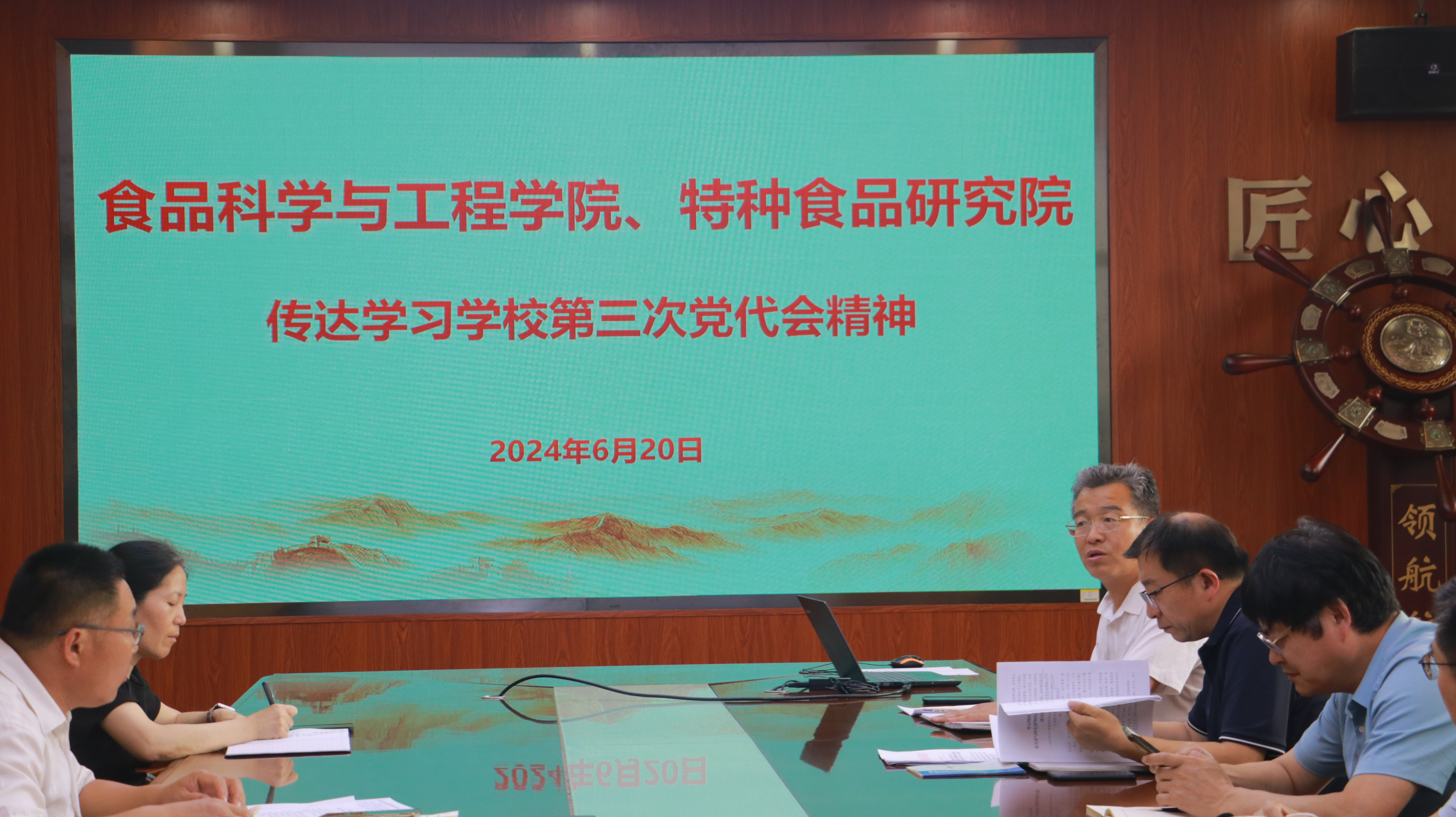 6月20日,mk体育、特种食品研究院在食品楼310召开教职工政治理论学习会议,传达学习公司第三次党代会精神,会议由公司党委书记车广杰主持。