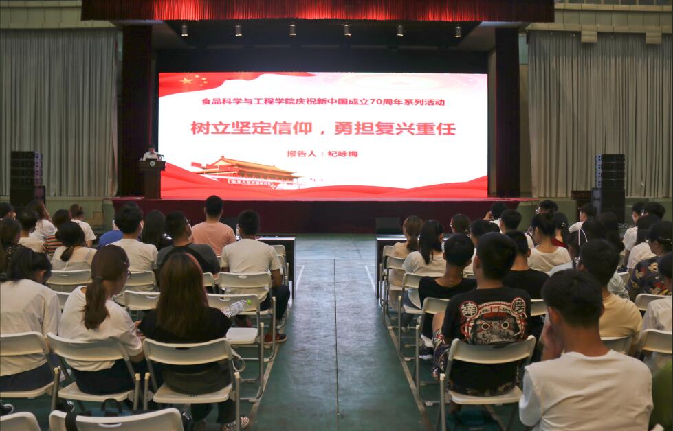 9月12日,mk体育在文体馆开展庆祝新中国成立70周年系列活动之“树立坚定信仰 勇担复兴重任"主题报告会。本次活动邀请到马克思主义公司马克思主义基本原理教研部主任纪咏梅老师担任主讲人。公司副经理孙庆杰、党委副书记宋伟、副经理陈海华、学工办成员、全体新生和部分高年级员工参加。报告会由宋伟主持。