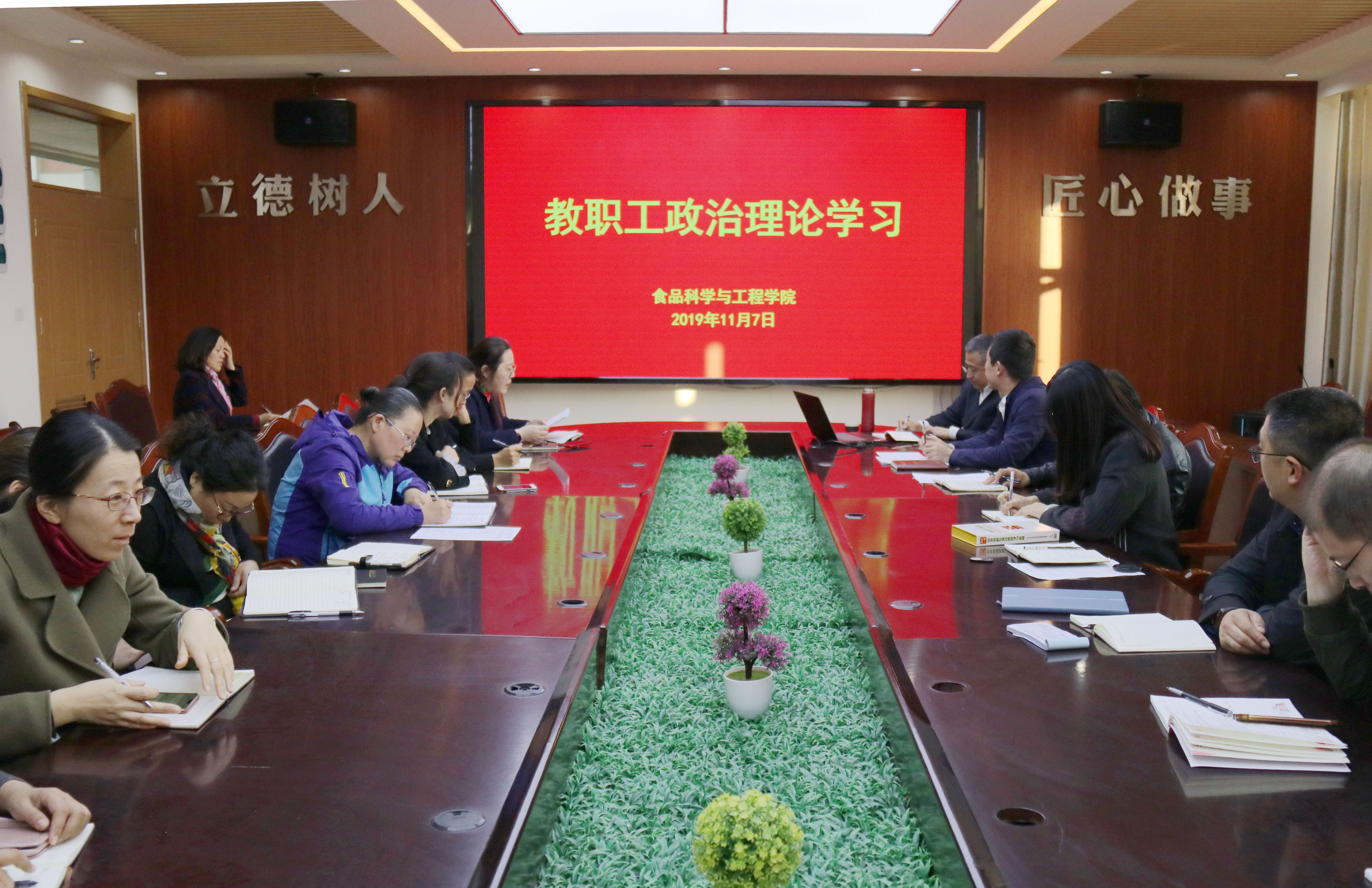 11月7日,mk体育副经理孙庆杰、陈海华在食品楼会议室为全体教职工讲专题党课。