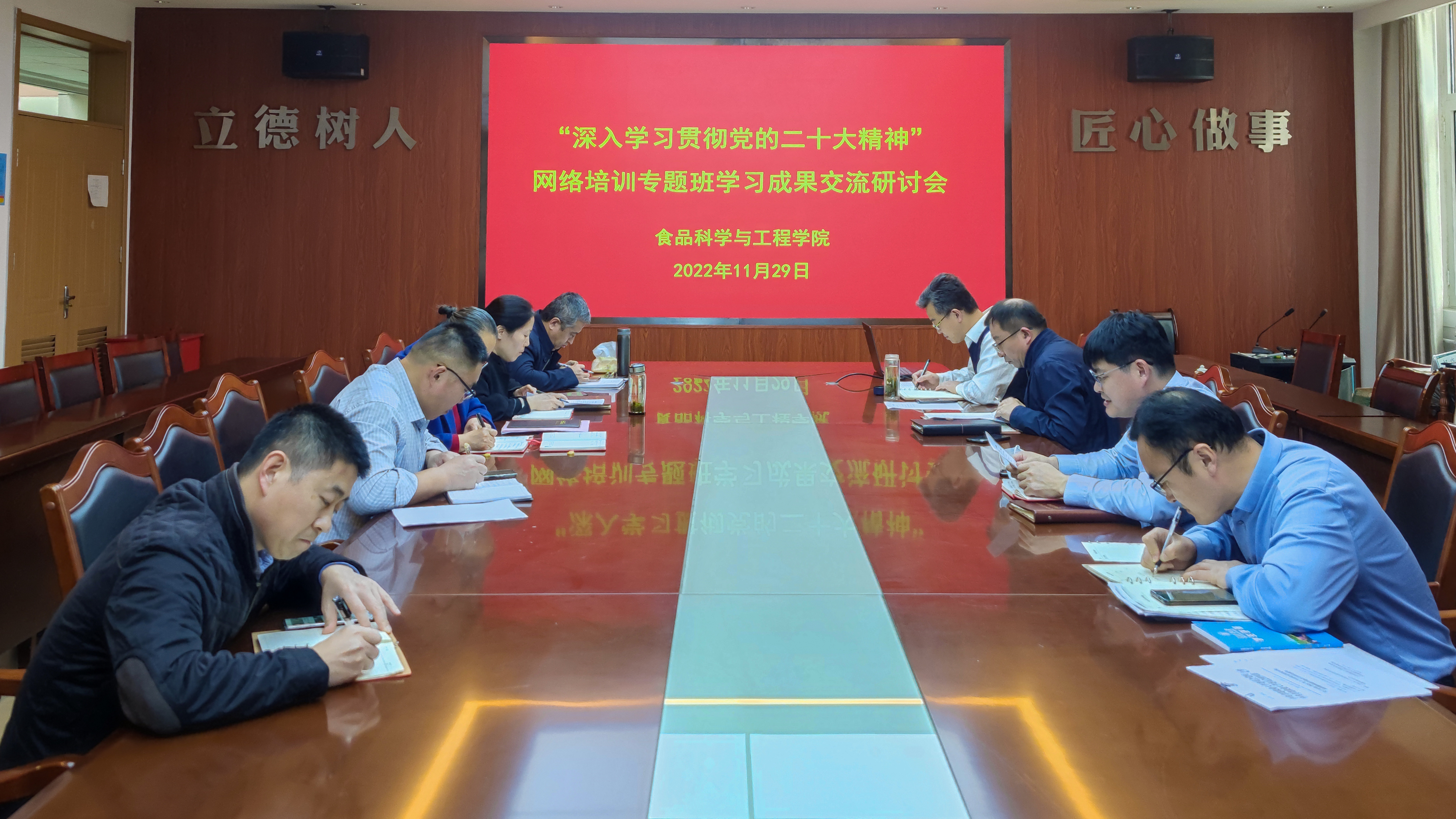 会议强调,中心组成员要从政治、全局、战略高度,以更加宽广的视野看待和理解党的二十大,以高度的思想自觉、政治自觉、行动自觉,不断把学习宣传贯彻工作引向深入。要在全面学习、全面把握、全面落实上下功夫,在结合本职工作、守正创新抓落实上下功夫,着力推动公司各项工作质量全面提升。要把贯彻落实党的二十大精神与谋划公司明年和今后一个时期工作结合起来,系统谋划具体思路、主要举措、重点抓手和相关机制,努力凝聚起全院师生干事创业的智慧和力量,奋力开创公司发展新局面。