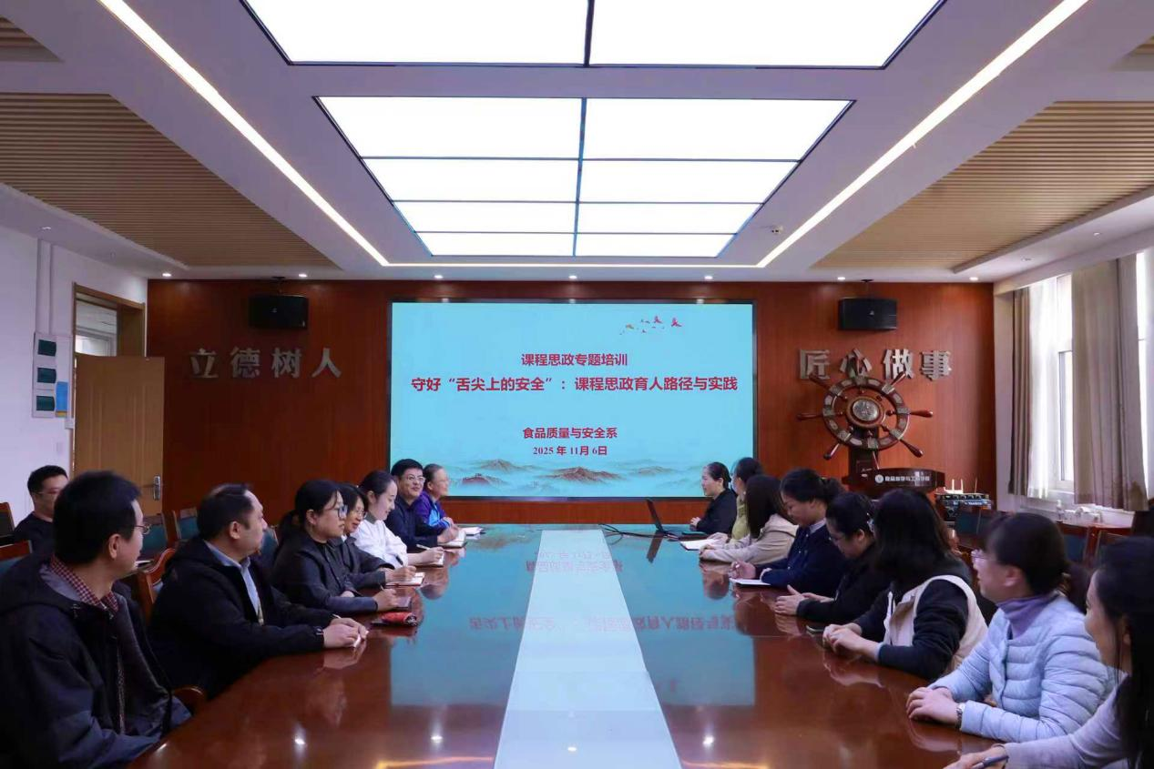 食品安全是民生底线,更是社会治理的重点领域。为深入落实《高等公司课程思政建设指导纲要》要求,推动思政教育与食品专业人才培养深度融合,11月6日下午,食品质量与安全系面向全体专任教师,开展“守好‘舌尖上的安全’:课程思政育人路径与实践”专题培训,为食品行业输送高素质、有担当的专业人才夯实教育基础。