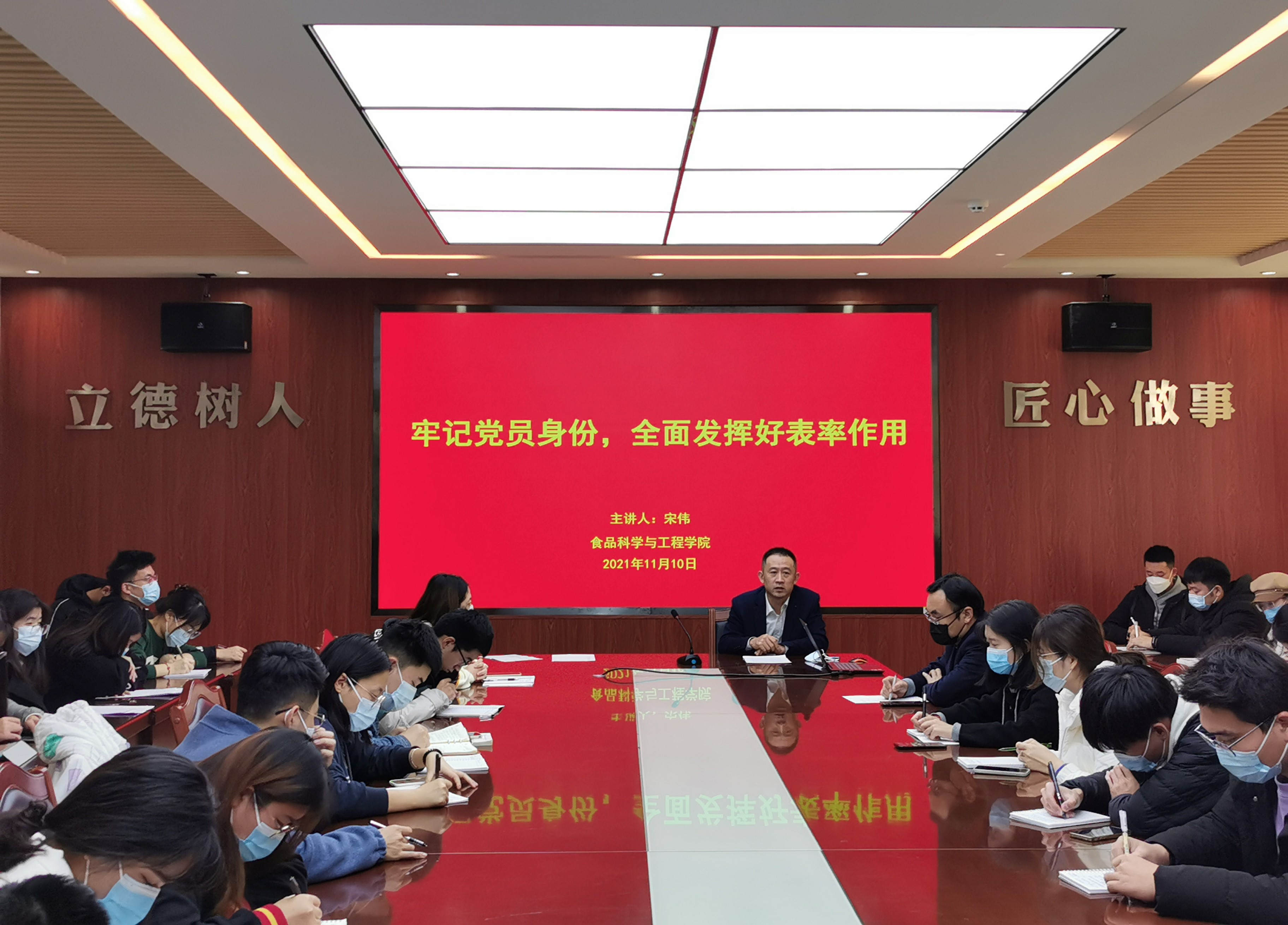 11月10日,mk体育于食品楼开展以“牢记党员身份,全面发挥好表率作用”为主题的党课。公司党委书记宋伟担任主讲人,团委书记李永青出席活动,第三、四、五党支部的全体党员以及2021年下半年党校培训学员积极参加。