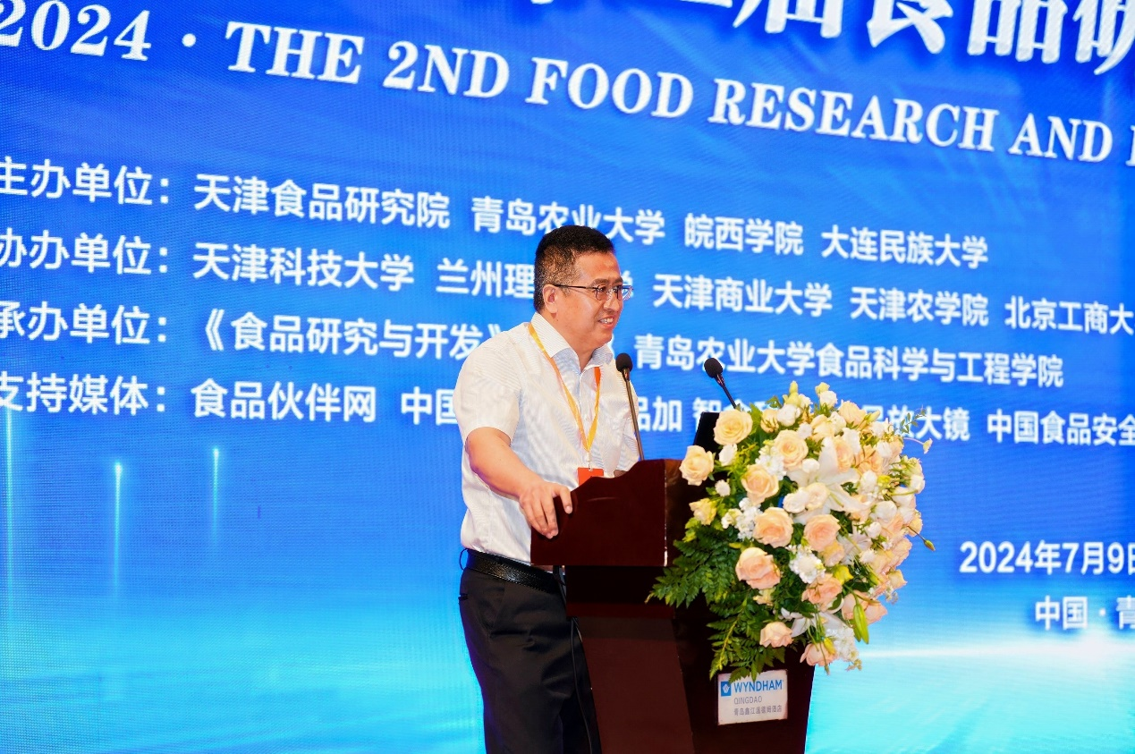 7月9日,由公司与天津食品研究院、皖西公司、大连民族大学联合主办的2024•第二届食品研究与创新发展论坛在青岛开幕,中国工程院院士任发政、中国工程院院士谢明勇出席论坛,来自高校、科研院所、食品行业相关企业的专家学者500余人参加论坛。公司党委书记潘军出席论坛开幕式并致辞,副董事长、mk体育经理孙庆杰主持大会报告。