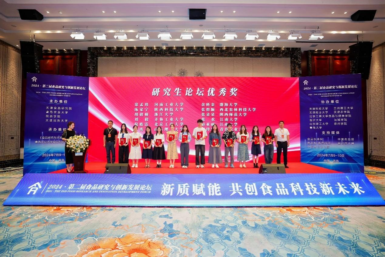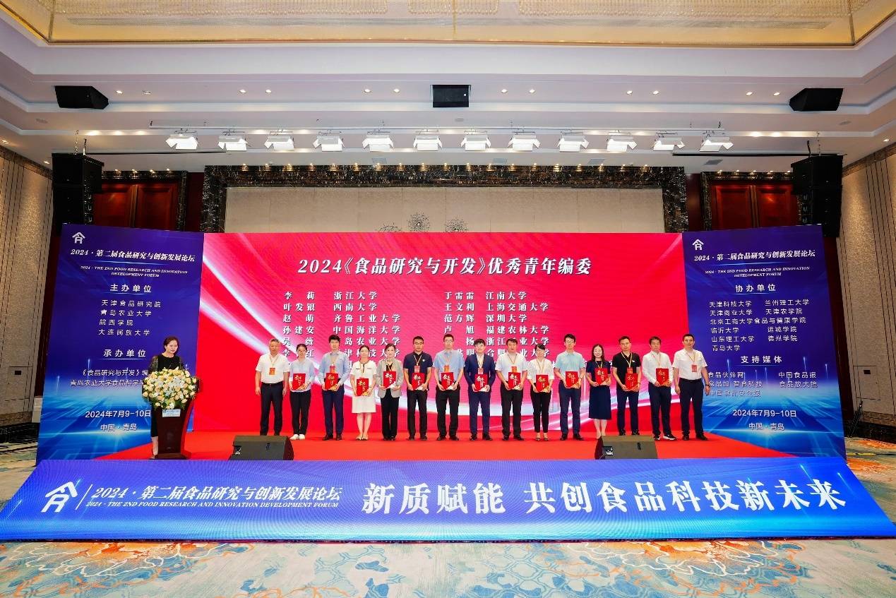 论坛上,天津食品集团党委委员、副总经理毕国生,渤海大学党委副书记刘贺为《食品研究与开发》优秀青年编委颁发荣誉证书,皖西公司党委副书记、董事长黄友锐,中国海洋大学教授牟海津为12位研究生颁发“2024•第二届食品研究与创新发展论坛”研究生论坛优秀奖。公司吴薇教授和研究生周玲玲分别获奖。
