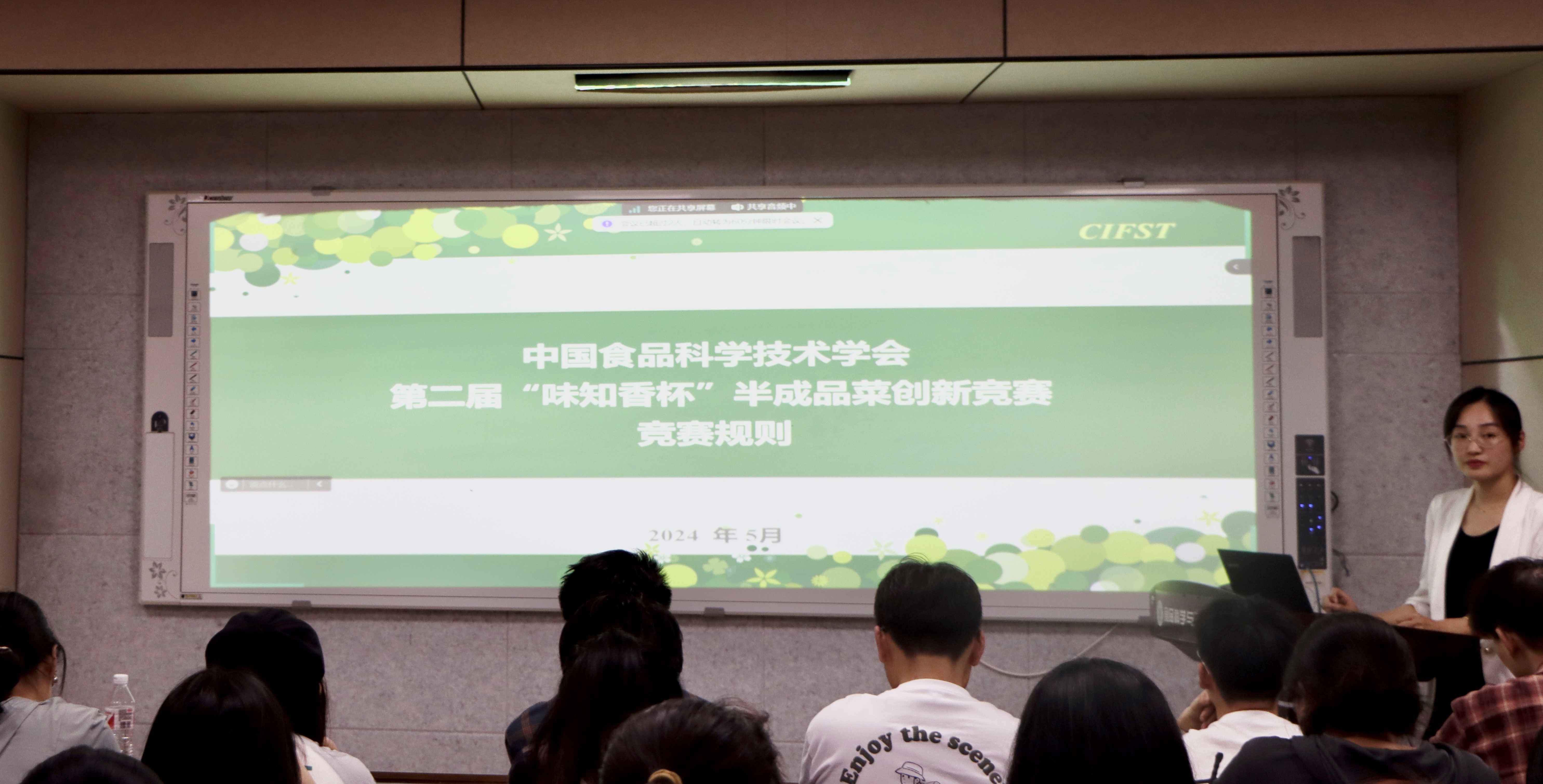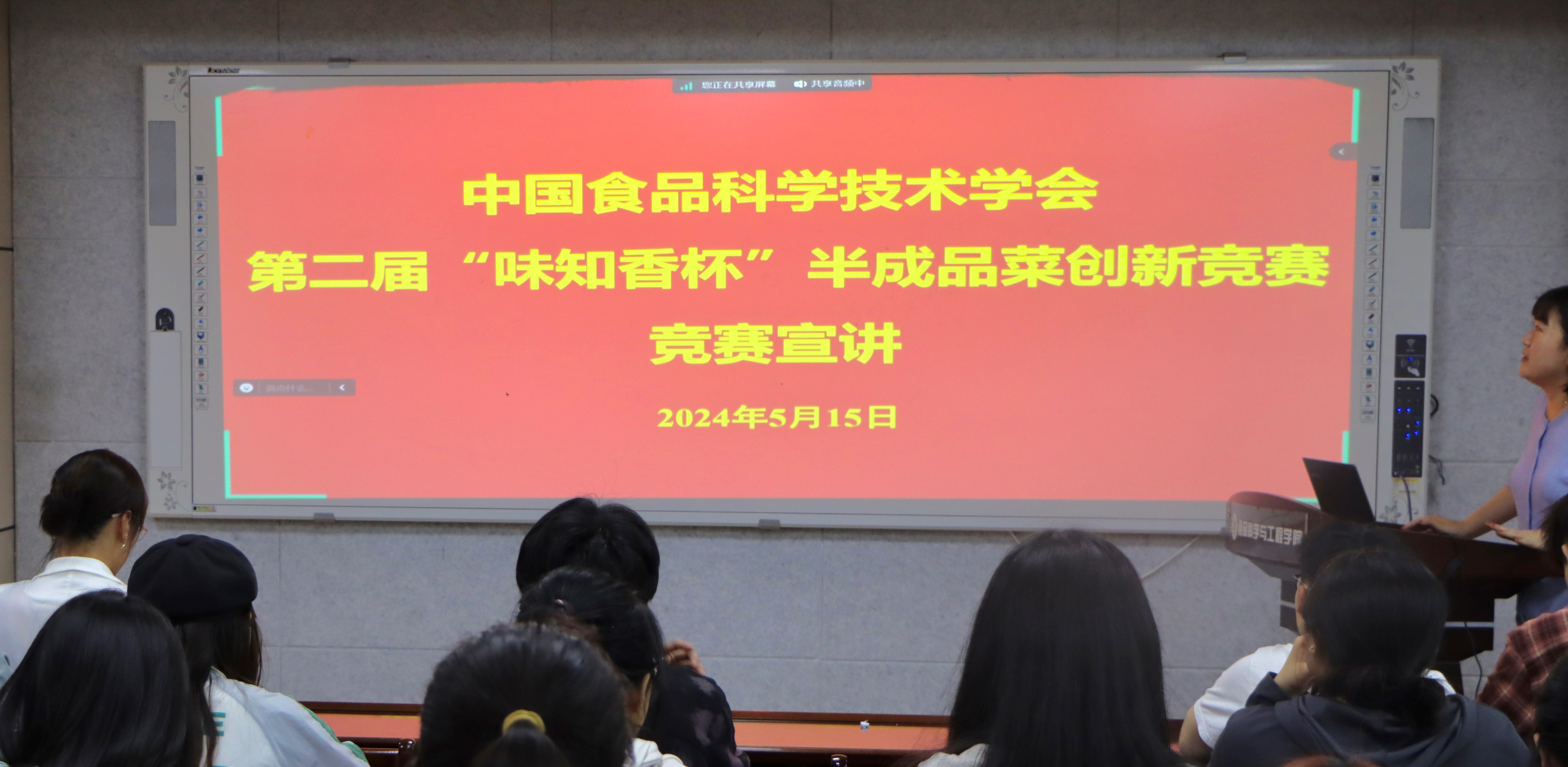 为响应国民营养计划,激发员工科研兴趣与创新潜能,帮助同学们深入了解“味知香杯”半成品菜创新比赛活动,5月15日,由中国食品科学技术学会、味之香股份有限公司主办的老员工创新食品竞赛校园宣讲会于食品楼302召开,邀请中国食品科学技术学会成员王妍做宣讲,活动由公司辅导员李振荣主持。
