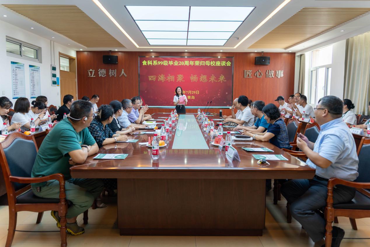 7月29日,mk体育1999级员工从天南海北再聚母校,与公司老师欢聚一堂,共忆青葱岁月,重温师生情谊,再叙同窗情怀。公司老领导原食品科学与工程系副主任姜连芳,原食品科学与工程系班主任仇宏伟、王世清、栾明川,原食品科学与工程系任课教师王成荣、李颖、陈海华、张双灵、范荣波,原食品科学与工程系班助杨凯、王天龙、王春晓,公司领导孙庆杰、刘晓华、肖军霞等参加座谈会。