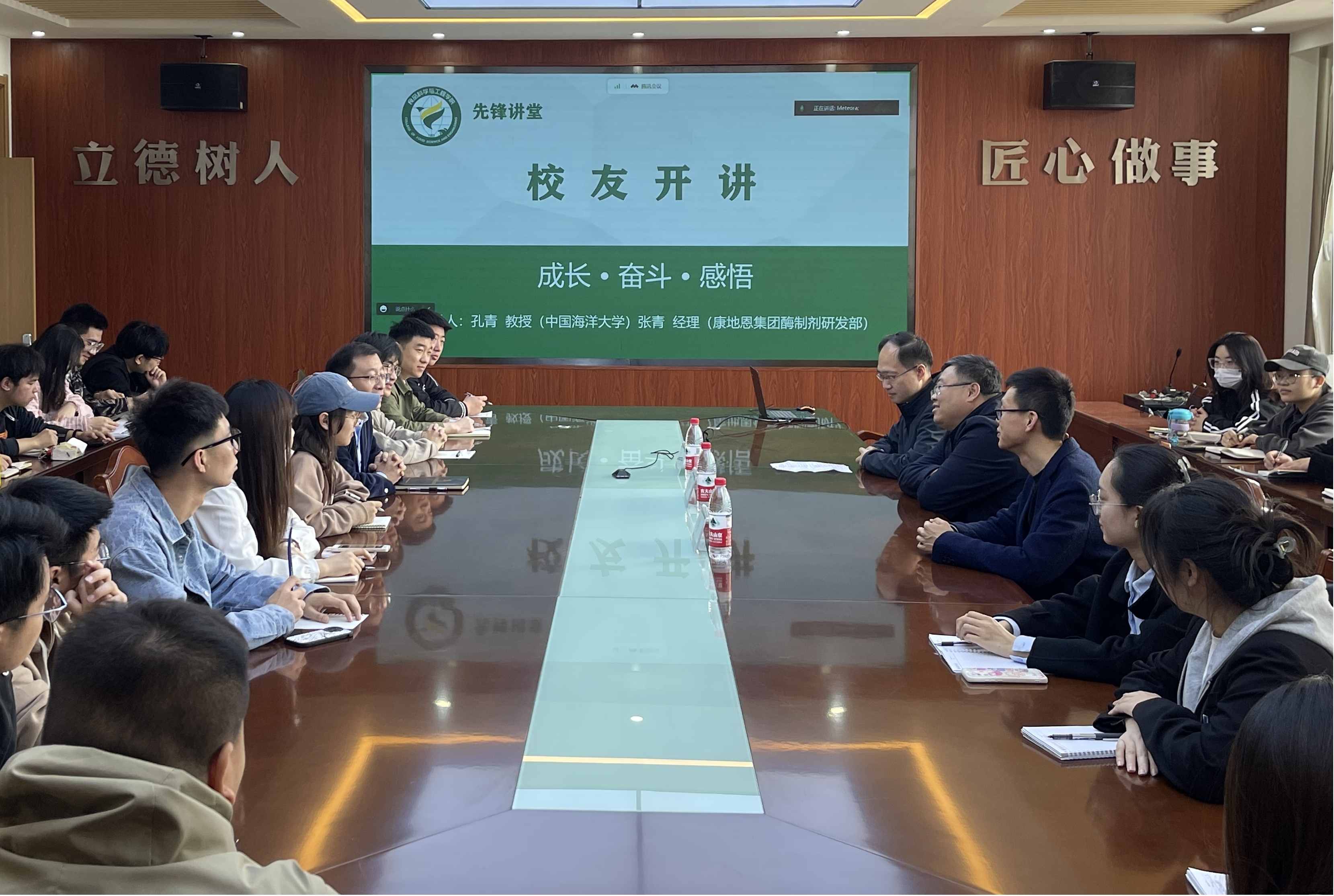 孔青教授的“五点感悟”深深触动了在场同学,他以自己成长经历中的得与失提醒在校师弟师妹,大学期间一定要早定奋斗目标,朝着自己的目标,多交流、多思考、多努力,多到企业和生产一线锻炼。张青员工围绕“链接、认同、自律”,深刻交流了自己从企业基层一步步成长、成熟的认识和体会,期望大家在今后的职场中能够吃得了苦,扛得了压,沉得住气,如此一定会收获最好的自己。