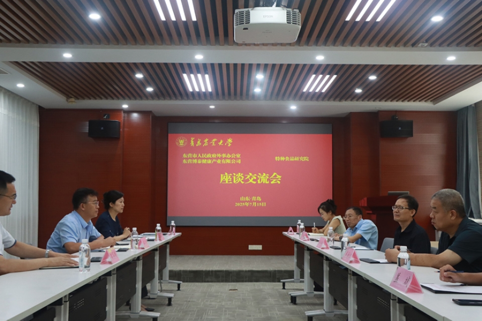 在与东营市人民政府外事办公室、东营博泰健康产业有限公司座谈交流会上,车广杰介绍了特种食品研究院的发展定位、学科专业特色、人才技术优势以及服务地方经济社会发展情况。綦跃彬介绍了东营市以及黄三角农高区食品产业发展情况,贾应刚介绍了公司的发展历程、市场定位、研发需求以及合作意向等。双方围绕共建创新平台展开探讨,期望通过整合各方资源,打造一个集科研、开发、转化为一体的创新平台,在健康食品精深加工、功能性食品开发、药食同源产品开发等方向开展实质性合作,加速科研成果向实际生产力的转化。