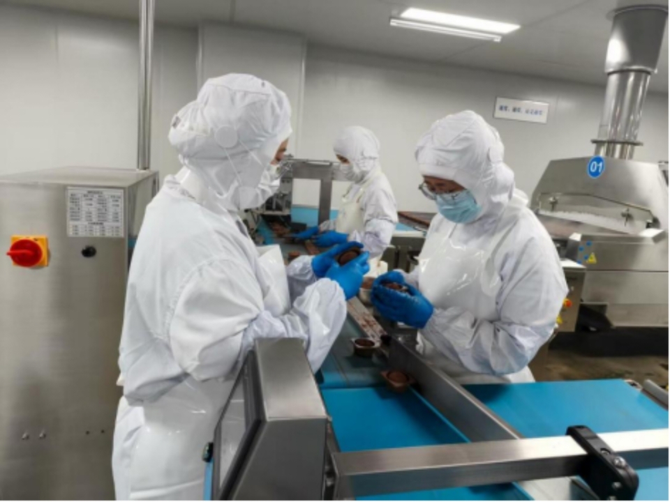 在mk体育李兆杰、李鹏老师指导下,27名同学深入丹香生产一线,在不同岗位进行轮岗实践,学习了烘焙糕点的全流程生产过程。同学们分组轮岗进入西点、中点、面包、曲奇、蛋糕等生产车间。从原料筛选、产品生产、质量检测到成品包装,同学们在实习导师指导下全程参与,不仅提升了专业实践能力,更深刻体会到食品人“用好料做好食品”的匠心精神。