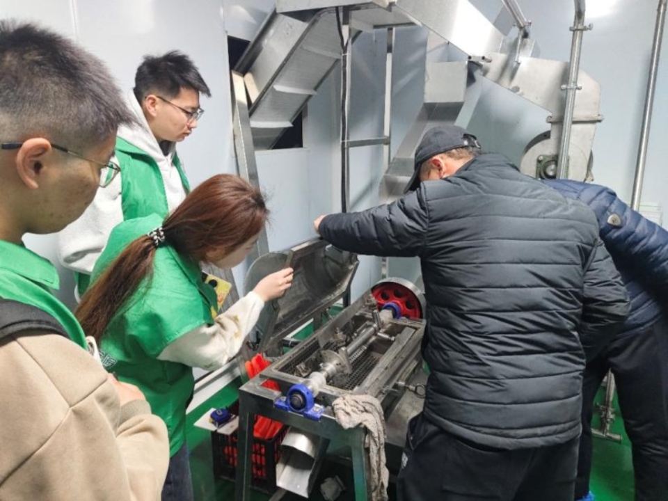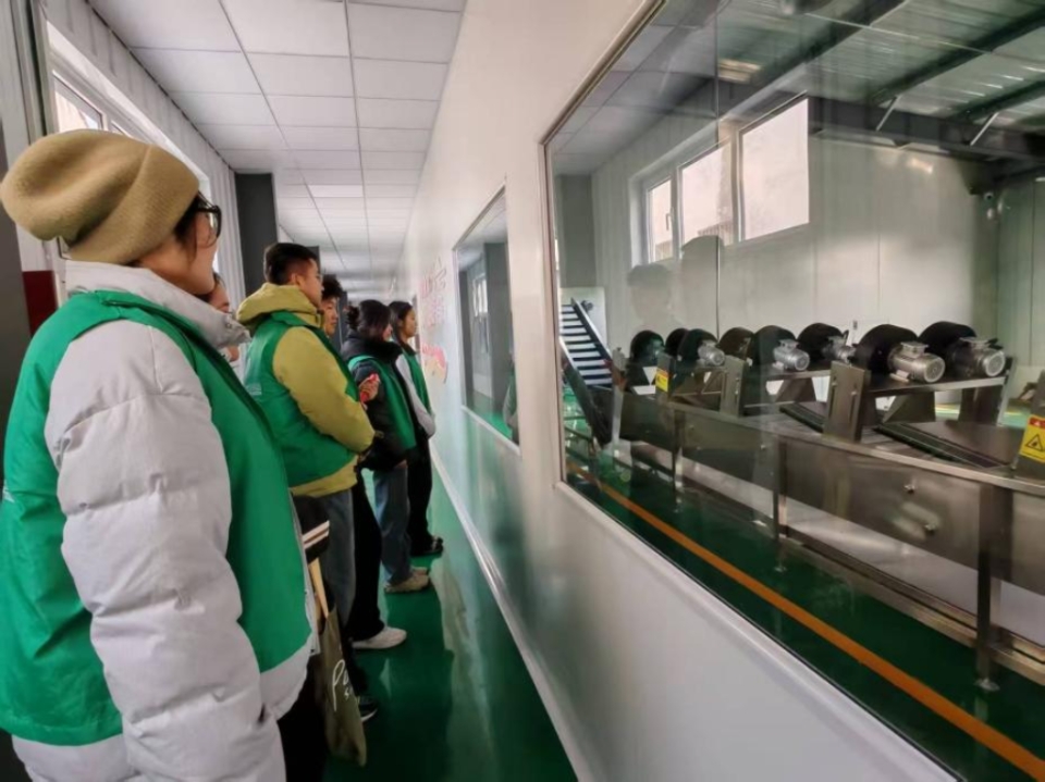 2月27日,在山东青农食品有限公司,实践团深入现代化果酒生产线,学习食品检测安全平台的操作流程,与种植户交流现代农业技术。在驻村第一书记李永青的带领下,师生一行深入车间、展厅和研发实验室,了解公司规模和储备干部培养计划,部分员工还参与了体验式工程实习,切身感受企业文化和发展历程。
