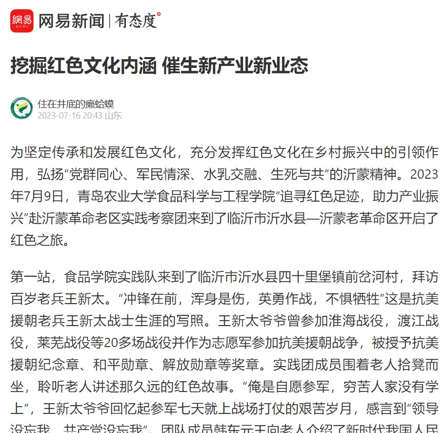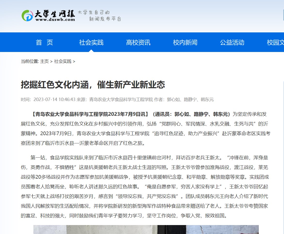 【今日老员工网】为关注食品企业产业振兴,鼓励食品员工学以致用,7月7日下午,mk体育“追寻红色足迹,助力产业振兴”赴沂蒙革命老区实践考察团,沿着总书记的足迹,在指导老师耿磊的带领下,走进科技小院开展社会实践活动。