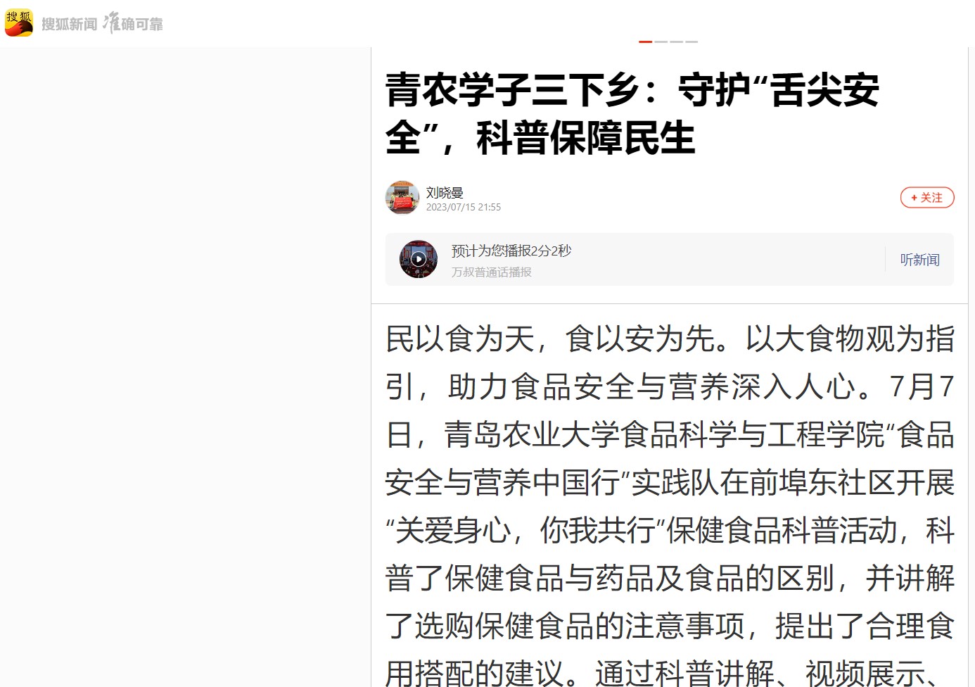 【搜狐新闻】民以食为天,食以安为先。以大食物观为指引,助力食品安全与营养深入人心。7月7日,mk体育“食品安全与营养中国行”实践队在前埠东社区开展“关爱身心,你我共行”保健食品科普活动,科普了保健食品与药品及食品的区别,并讲解了选购保健食品的注意事项,提出了合理食用搭配的建议。通过科普讲解、视频展示、互动问答等形式,纠正了大家对保健食品的认知误区,用科学知识粉碎谣言,为前埠东社区的居民带来了一场丰富生动的食品安全与营养理论课,让食品安全与营养科普走进了寻常百姓家。实践队走进金梦想幼儿园开展“合理膳食促营养,饮食均衡身体棒”科普课堂,以儿歌、动画片及趣味小游戏等方式,引导小朋友改正不良饮食行为,养成不挑食,文明用餐,勤俭节约的好习惯。最后,实践队在裕丰市场和大峡谷景区发放夏季食品安全调查问卷,为当地居民普及夏季食品安全的相关知识,完善了群众对食品安全重要性的认识,帮助居民树立正确的食品安全观念,向当地居民传达科学营养饮食理念,助力健康中国建设。