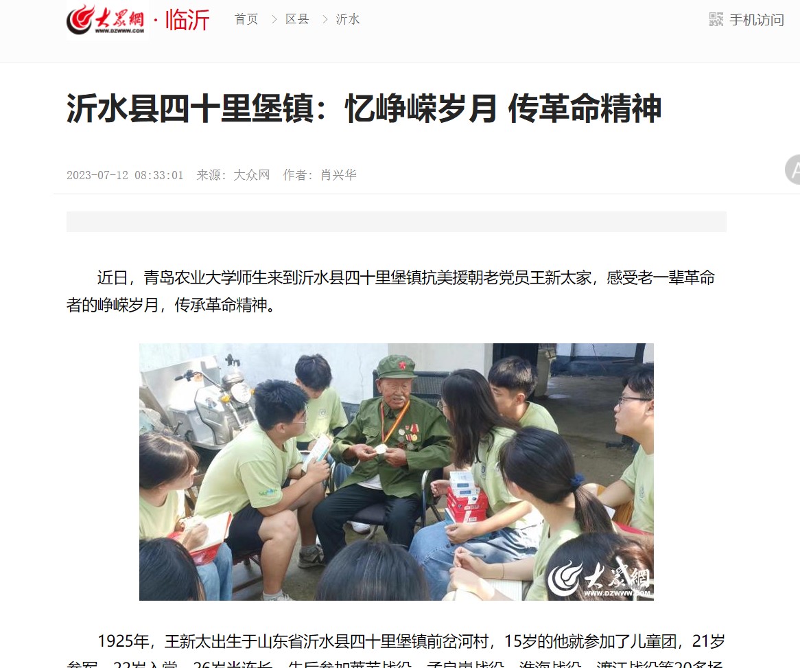 近日,mkmksport师生来到沂水县四十里堡镇抗美援朝老党员王新太家,感受老一辈革命者的峥嵘岁月,传承革命精神。