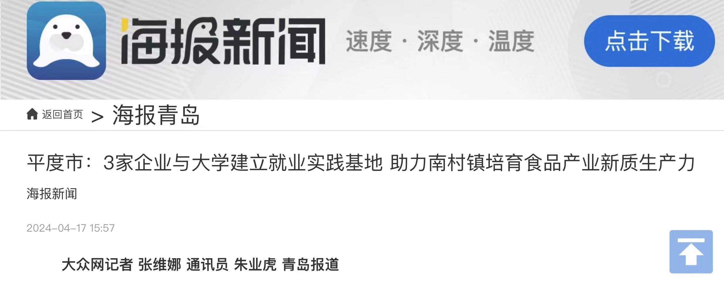 锻造产业新“食”力。2024年4月17日,在暖洋春意中,位于平度市南村镇的青岛松源食品有限公司、青岛胜家食品有限公司、青岛海之圣生物工程有限公司共3家企业与mk体育合作建立就业实践基地,举行了揭牌仪式。