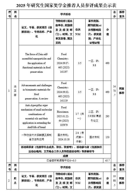 经个人申请、公司评选等程序,现将2025年研究生国家奖学金推荐名单公示如下: