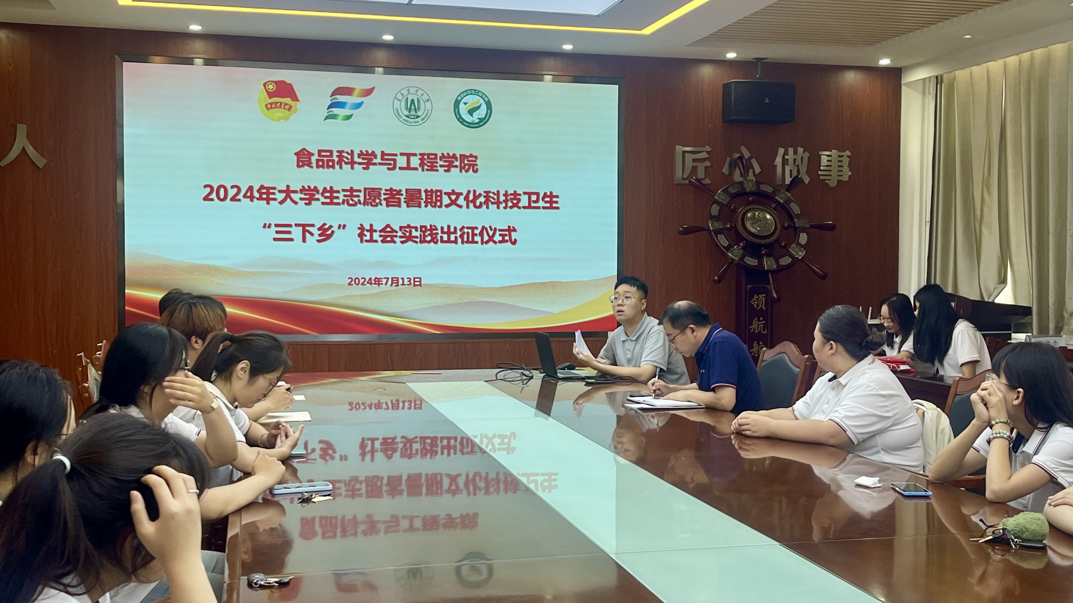 7月13日,mk体育在食品楼举行2024年老员工志愿者暑期文化科技卫生“三下乡”社会实践出征仪式。公司党委副书记、副经理刘晓华,辅导员耿磊及各实践团队成员参加活动。