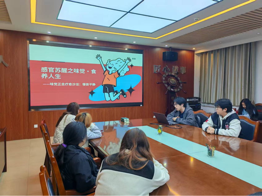 本次活动以“味觉正念疗愈”为主题。在正念引导环节,参与者在轻柔的引导声中闭眼深呼吸,感受食物温度与呼吸节奏的交融;随后进入分层品味三部曲,大家依照“闻香气、触质感、化余味”的步骤,专注体会食物在口中的味觉变化;最后的“共享味觉记忆场”环节中,同学们积极分享情绪感受,在倾听与交流中实现情感共鸣。同时,在理论讲解部分,主持人系统介绍了正念与味觉之间的科学联系,包括味觉调节情绪的神经机制以及感官特异性等核心知识。