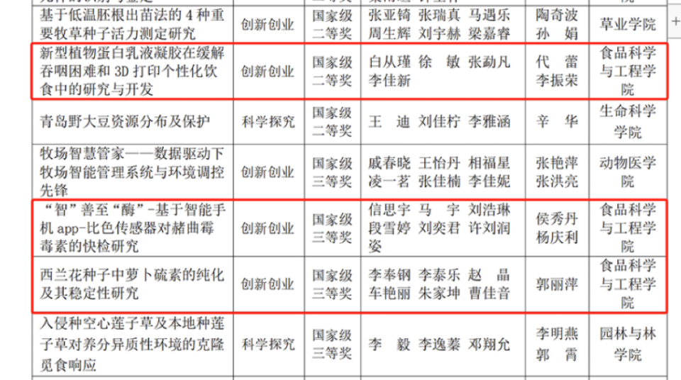 由代蕾、李振荣老师指导,白从瑾等同学完成的《新型植物蛋白乳液凝胶在缓解吞咽困难和3D打印个性化饮食中的研究与开发》项目通过调节pH并加入亚麻籽胶制备了一种新型植物蛋白乳液凝胶,拓展了豌豆蛋白乳液凝胶在缓解吞咽困难和3D打印个性化饮食等方面的应用,并通过开发高质量、多用途的植物蛋白可食用油墨,为创新性食品的设计和生产提供了全新的可能性。