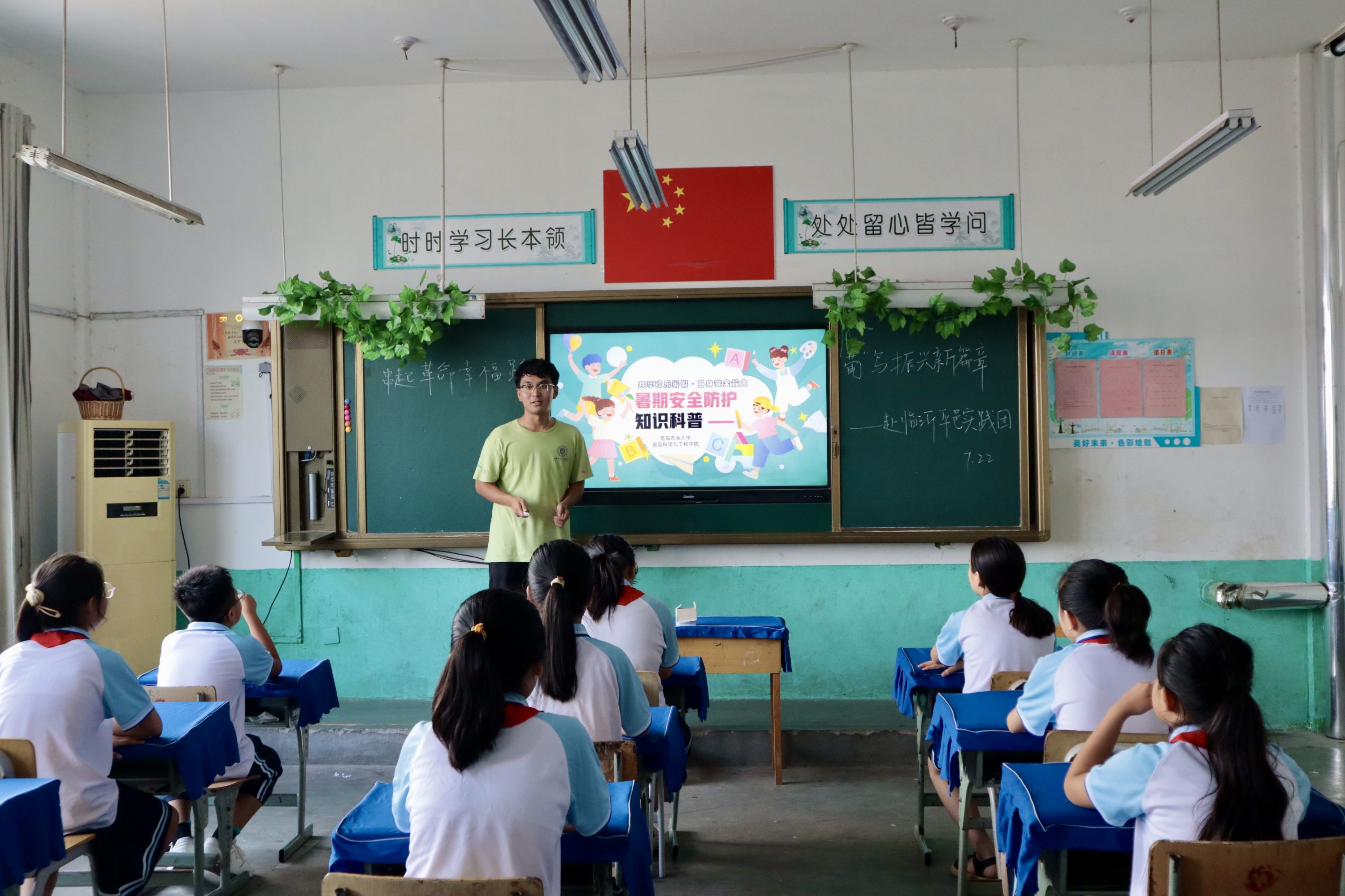 民以食为天,食以安为先。习近平总书记一直非常重视食品安全问题,那些“舌尖”上看似寻常的小事,都是习近平总书记心中的大事。实践团成员们来到东武沟小学举行图书捐赠活动,并组织武台镇的部分一年级员工,围绕预防溺水、交通安全、消防安全、居家安全和灾后饮食注意事项五大板块,以“PPT展示+视频观看+互动问答”的形式为同学们举行了暑假安全防护科普。团队成员组织开展了“我与葡萄的故事”活动,向员工们分发了印有葡萄科普知识的扇子和可供孩子们绘画的小风车。