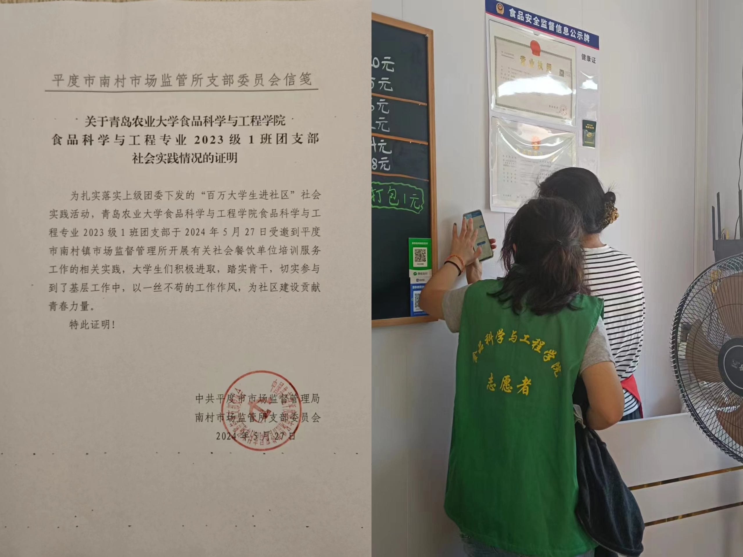 5月27日,mk体育食科2301班团支部的同学们走进平度市南村镇市场监管所,开展志愿服务活动。
