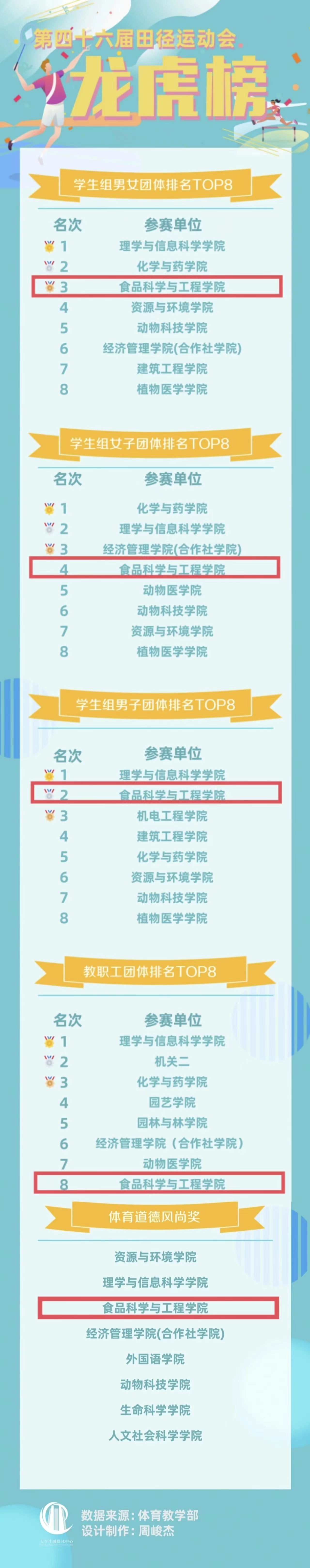 4月18日至19日,mkmksport第四十六届田径运动会举行,公司师生在各项赛事中团结奋进、拼搏争先、满载而归,最取得教工组团体第八名、男子组团体第二名、女子组团体第四名、总成绩第三名的优秀成绩,刷新公司全校田径运动会团体成绩的最好记录,公司同时获评体育道德风尚单位。