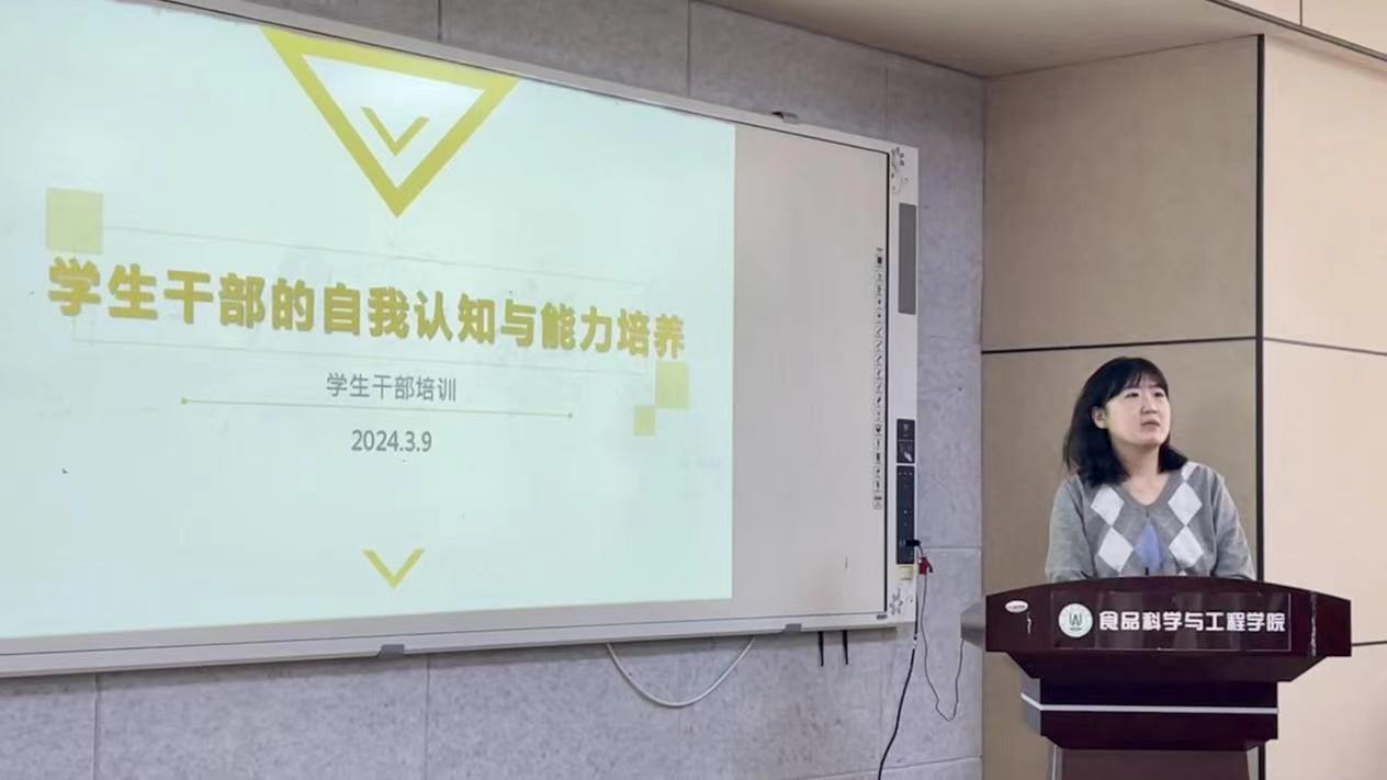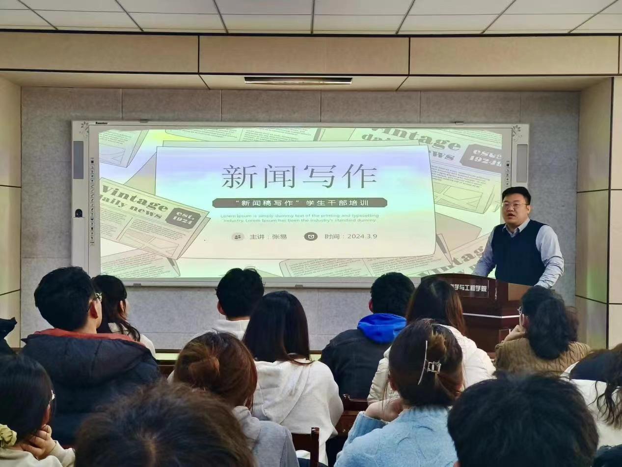 李振荣、江巧宁、耿磊、张易、朱婉姝五位老师分别以“员工干部的自我认知与能力培养”、“党员发展的流程与要求”、“毕业生就业形势与政策”、“心理‘六边形战士’的学习与成长”、“新闻写作技巧”为题作报告。
