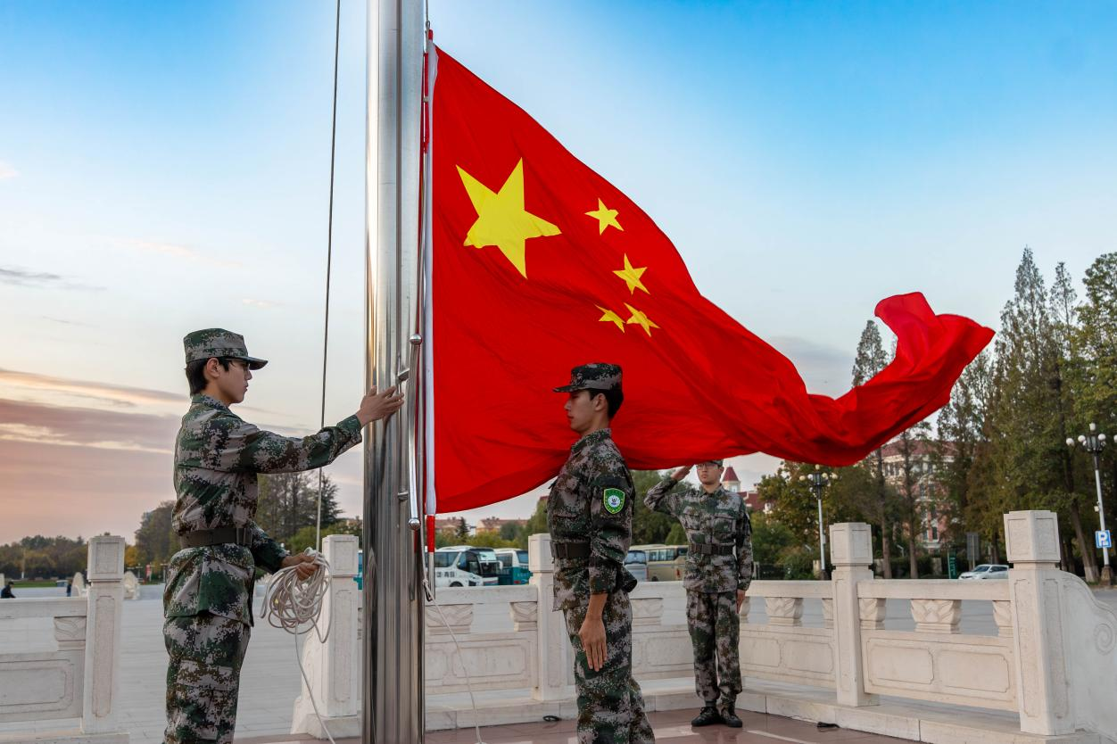 11月4日,mk体育于城阳校区虹子广场和平度校区图书馆前广场同时举行升旗仪式。学工办辅导员、各年级全体同学参加升旗仪式。