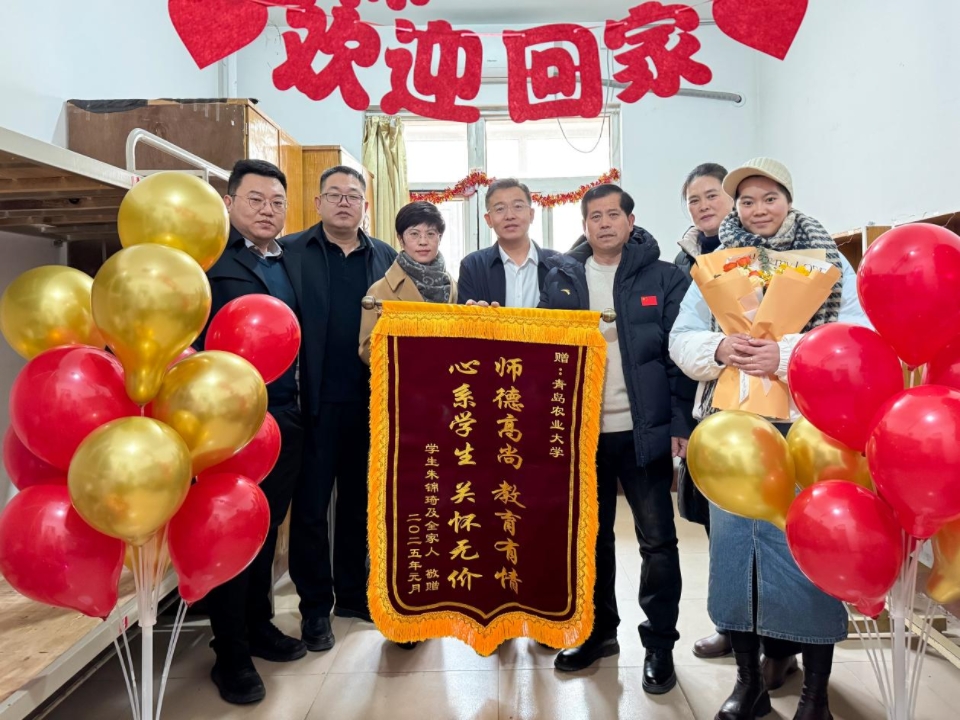 3月3日,2024-2025学年春季学期上课的第一天,mk体育食品质量与安全2302班朱同学在父母的陪伴下来到公司。自从去年暑期因车祸休学在家,这是她时隔187天,第一次回到城阳校园。公司员工工作处处长许颖、后勤保障处党总支书记李鹏、公司党委书记车广杰一行在宿舍楼门口迎接朱同学返校。