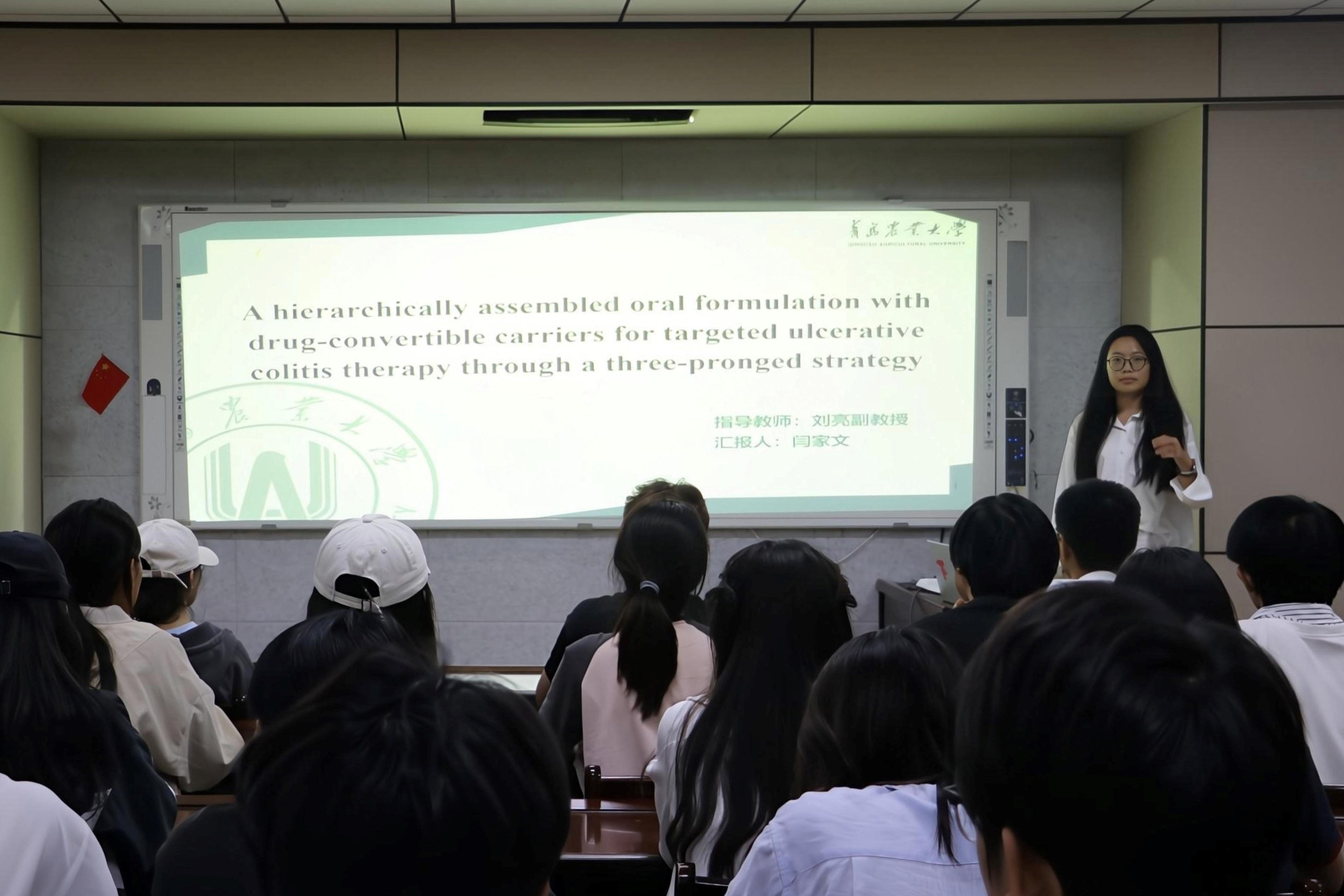 9月18日,mk体育在食品楼302举办第五十期“食学研讲”活动。本次活动由食品加工与安全专业24级研究生闫家文主讲,主题为“‘君臣佐使’理论启发的三靶点可转化载体口服制剂用于溃疡性结肠炎治疗”。2025级研究生新生积极参加。