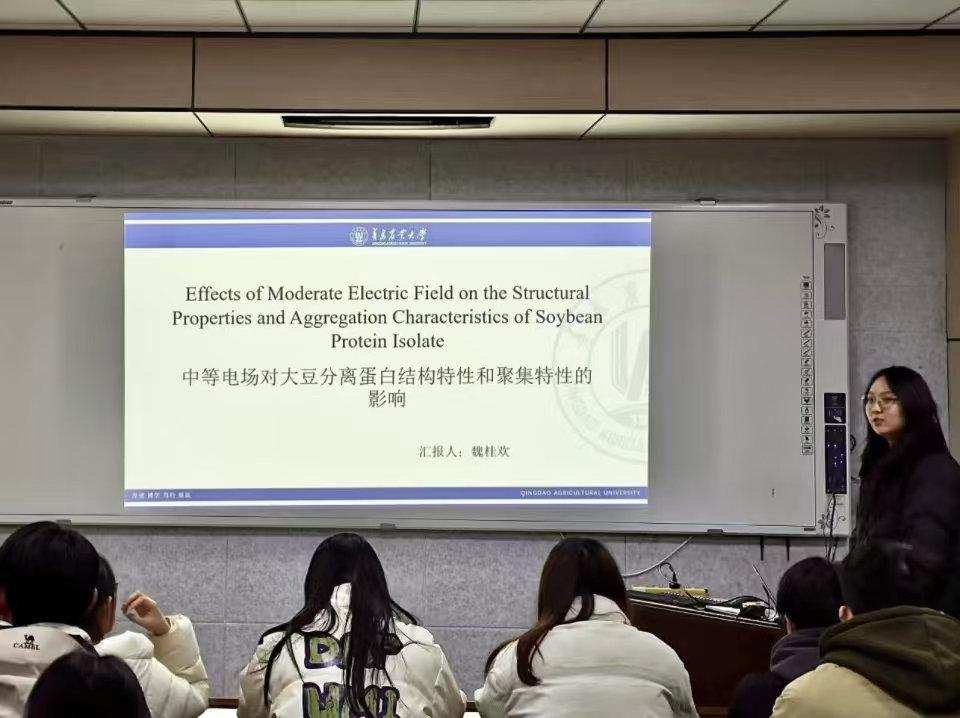 11月28日,公司举办了第三十三期“食学研讲”学术汇报活动。本次活动由食品加工与安全专业24级研究生魏桂欢主讲,主题为“适度电场对大豆蛋白分离物结构特性和聚集特性的影响”,报告从宏观到微观尺度研究了适度电场(MEF)对大豆蛋白的影响,吸引了众多师生参与。
