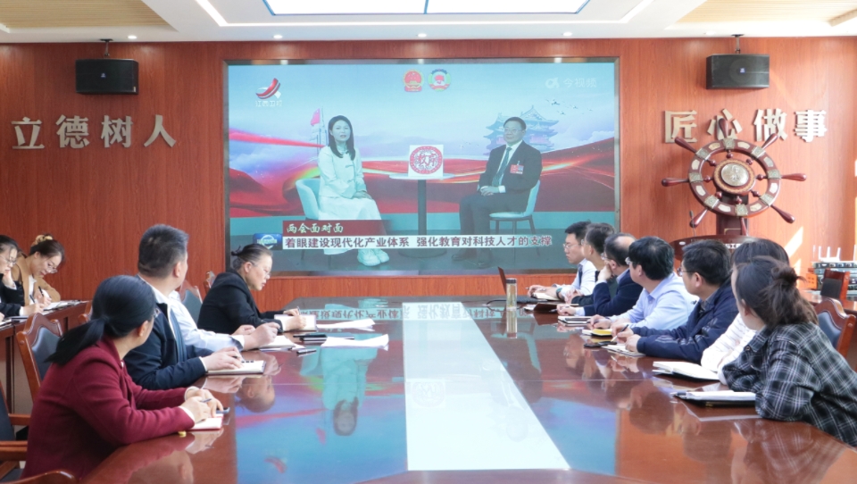 会上,与会人员集体观看了《两会面对面》专题节目,与会人员集体学习了习近平总书记在两会期间《强化教育对科技和人才支撑作用形成人才辈出人尽其才才尽其用生动局面》重要讲话精神以及政府工作报告中关于教育的工作部署,并对深入学习贯彻习近平总书记重要讲话精神和落实全国两会精神提出了明确要求。