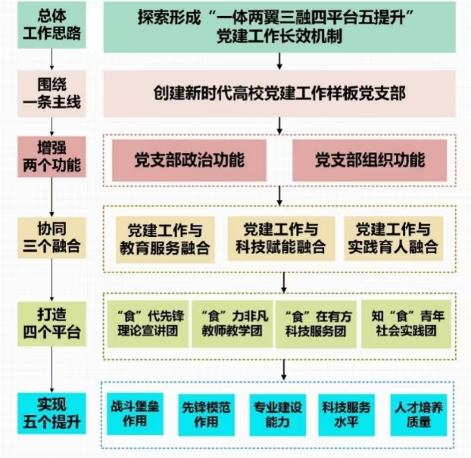 严格对标三次党代会提出“引导党员立足岗位争创一流,在推动公司高质量发展、联系服务师生中挑重担、当先锋、打头阵。”的工作要求,第一党支部结合学科专业特色,凝练“聚粮心·守粮安”,开展“党建+”项目建设,以“一问题、一目标、一方案”的形式,打造“食”代先锋理论宣讲团,建设“食”力非凡教师教学团队,组建“食”在有方科技服务团,成立知“食”青年社会实践团,探索形成“一体两翼三融合四平台五提升”15321党建工作长效机制,着力做到党建工作与潜心立德树人、强化学科专业、服务国家战略三个深度融合,着力发挥教师党支部战斗堡垒和党员先锋模范两个作用。近年来,支部先后获批山东省“双带头人”教师党支部书记工作室,荣获全国巾帼文明岗、山东省三八红旗集体、mkmksport五星党支部等荣誉。支部党员连续3年入选全球“高被引科学家”,3人连续入选2022、2023全球前2%顶尖科学家榜单。