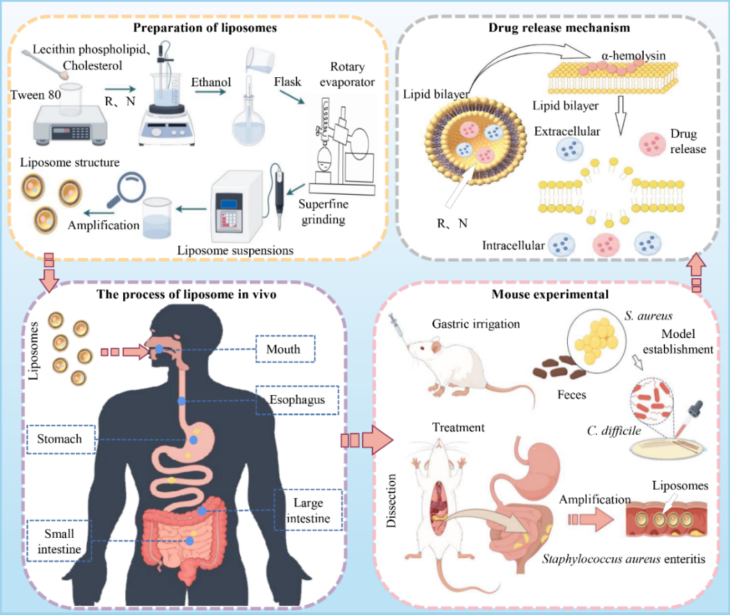 近日,mk体育鞠健教授团队在国际权威期刊《Materials Today Bio》(一区,TOP,IF=10.2)在线发表题为《Establishment and Application of Nano-liposomes System for Targeted Therapy of Methicillin-resistant Staphylococcus aureus Enteritis》的文章,创建了一种新型靶向治疗金黄色葡萄球菌肠炎的纳米运载体系。