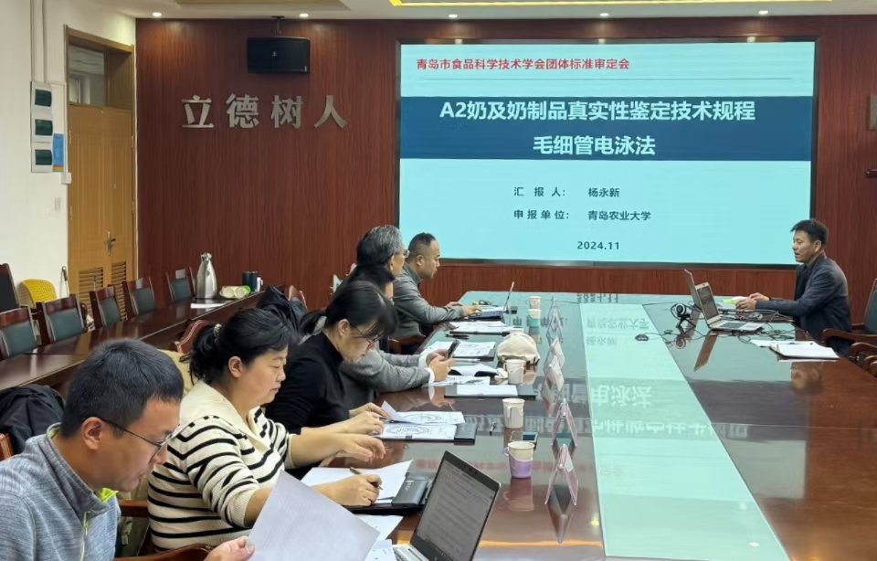 为加快完善团体标准制修订工作,进一步提高标准制修订质量,强化标准引领作用,助力发展新质生产力。11月17日,青岛市食品科学技术学会召开评审会,对mkmksport等单位制定的《牛乳及牛乳制品中A1和A2型β-酪蛋白的测定 毛细管电泳法》、《A2酸牛乳生产技术规范》等两项团体标准进行审定。评审专家组由来自中国农科院、山东省畜产品质量安全中心、山东省食品质量安全控制工程技术研究中心、中优乳奶业研究院(天津)有限公司和河北乐源牧业有限公司等单位的5名专家组成。青岛市食品科学技术学会理事长王宝维教授主持了本次评审会。