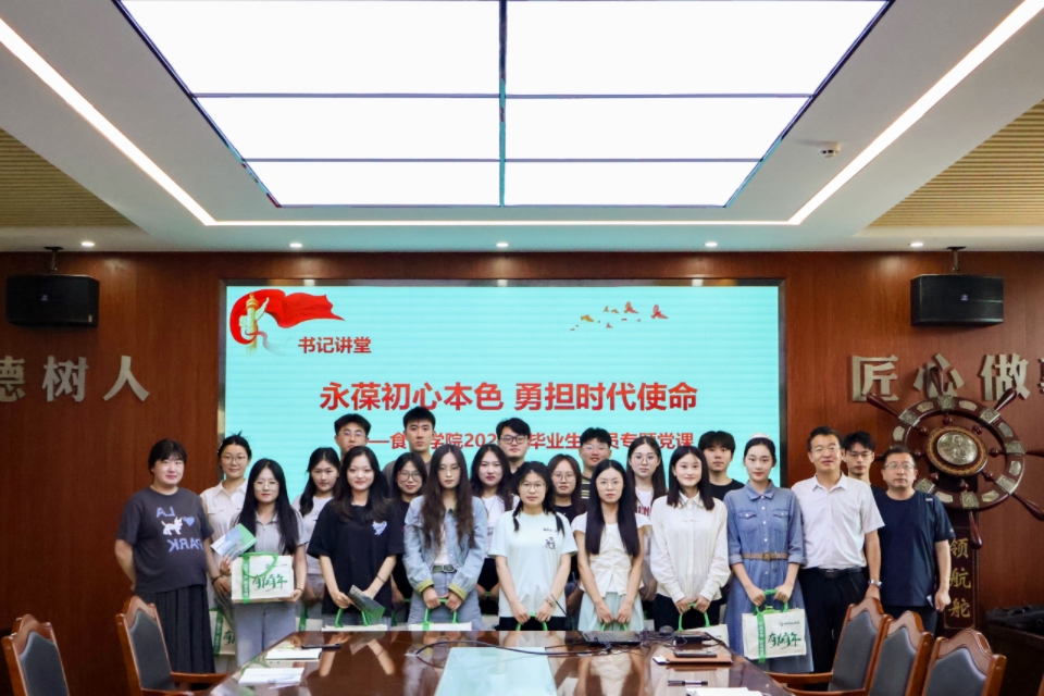 车广杰对毕业生党员提出四点期望:一是要讲政治,将其作为看问题、谋发展的根本指引,以政治眼光锚定方向,主动把个人发展融入国家大局;二是要强化理论学习,把其视为党员进步的“引擎”,以理论清醒护航实践前行;三是要严守规矩,无论未来身处何岗,都要以党的纪律筑牢底线,让规矩成为言行“标尺”;四是要坚守廉洁,将其作为食品人职业底色,面对各种诱惑要守牢初心,以廉洁守护食品安全与行业公信。