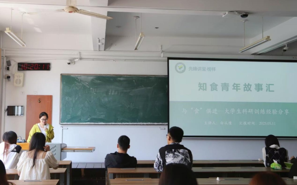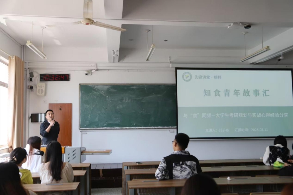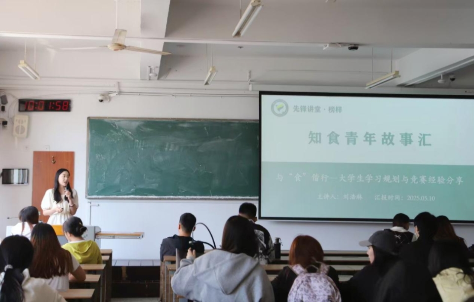 “与‘食’偕行”、“与‘食’俱进”、“与‘食’同频”,5月11日,mk体育“知食青年故事汇”在城阳校区开讲,粮食工程2101刘浩琳、粮食工程2101白丛瑾和食品科学与工程2102刘子裕分别围绕学习规划与竞赛经验、科研训练经验以及考研规划实战与2023级同学交流他们的“‘食’事求是”。
