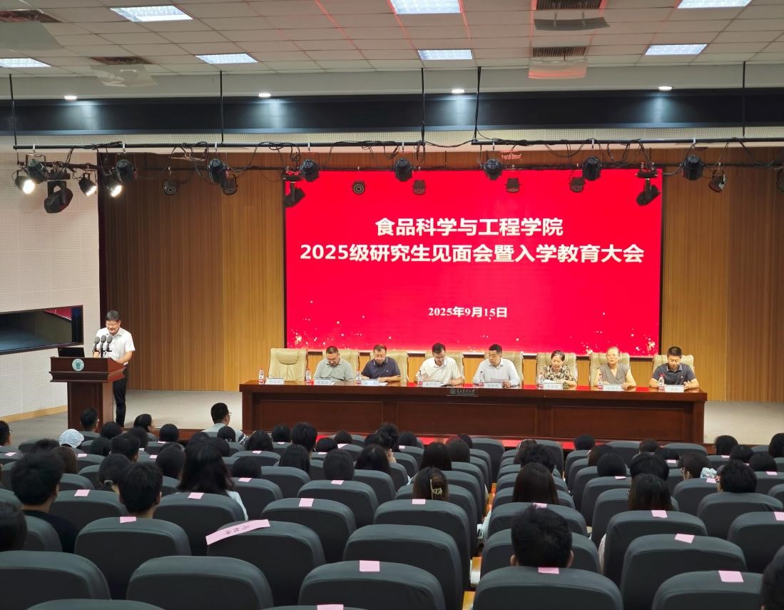 在校生代表、2024届研究生会执行主席冷丰羽发言,她结合自身科研体会,分享三点经验:一是坚守初心、不懈奋斗,不畏失败、厚积薄发;二是尊师爱友、敬业乐学,善用资源、团队协作;三是明确目标、充实生活,劳逸结合、张弛有度。她鼓励新生在科研道路上勇于探索、乘风破浪,为食品领域贡献智慧与力量。