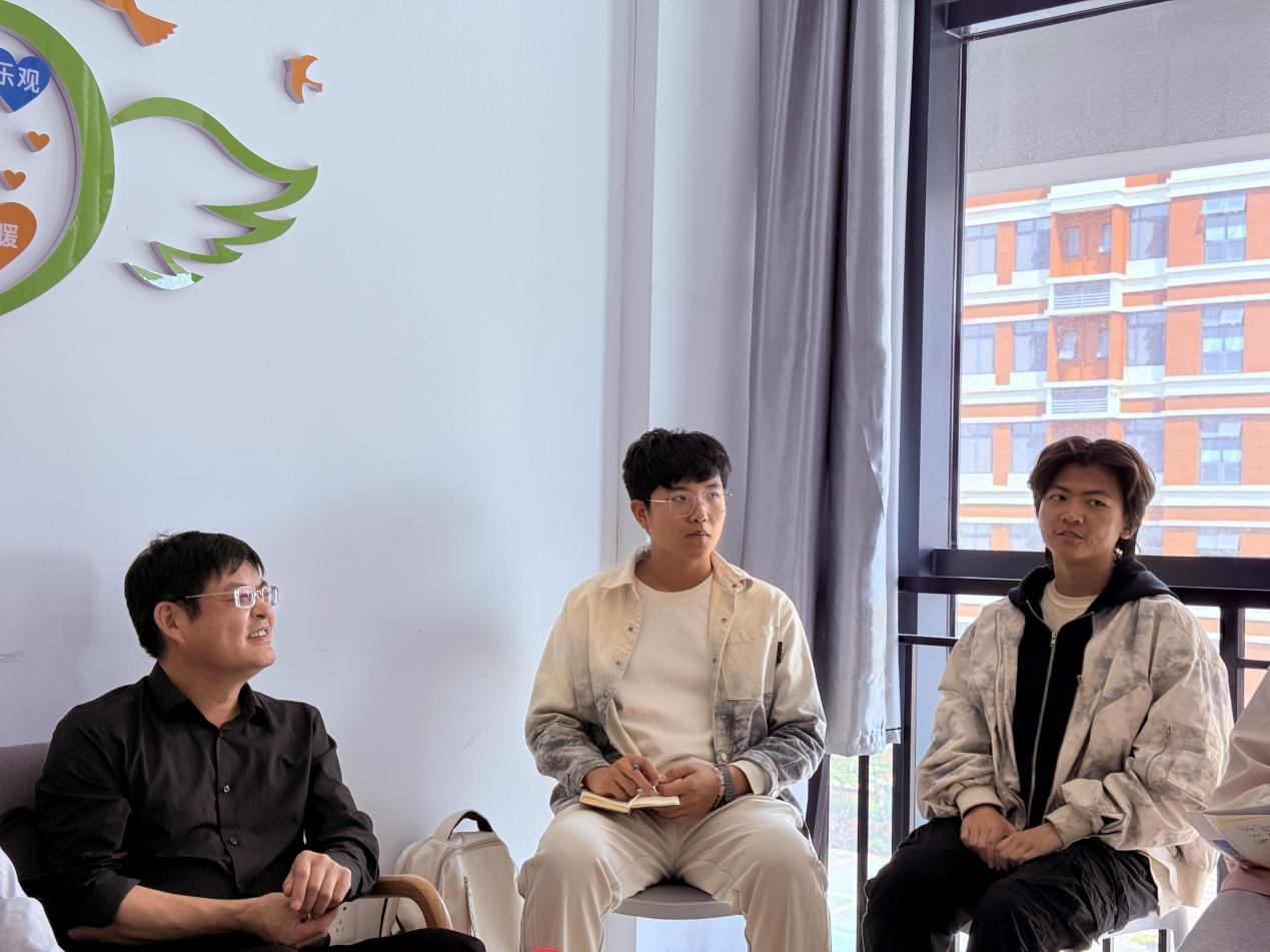 杨庆利关切地询问各位同学进入大学之后在生活、人际交往以及娱乐放松等方面的现状与变化,了解同学们对于大学的认识以及大学期间学业发展的规划。“要用长远的目光去规划自己的大学时光,大家最后都是要走到工作岗位上的,要根据自己的就业方向、自我认识以及目标岗位需要的知识储备,决定自己大学期间的努力方向……”杨庆利结合工作经历以及作为班主任的带班经验,引导同学们思考自己在大学期间的方向与选择,传授学术素养提高、自我能力评估、就业方向选择、考研择校以及备考方法等方面相关经验。